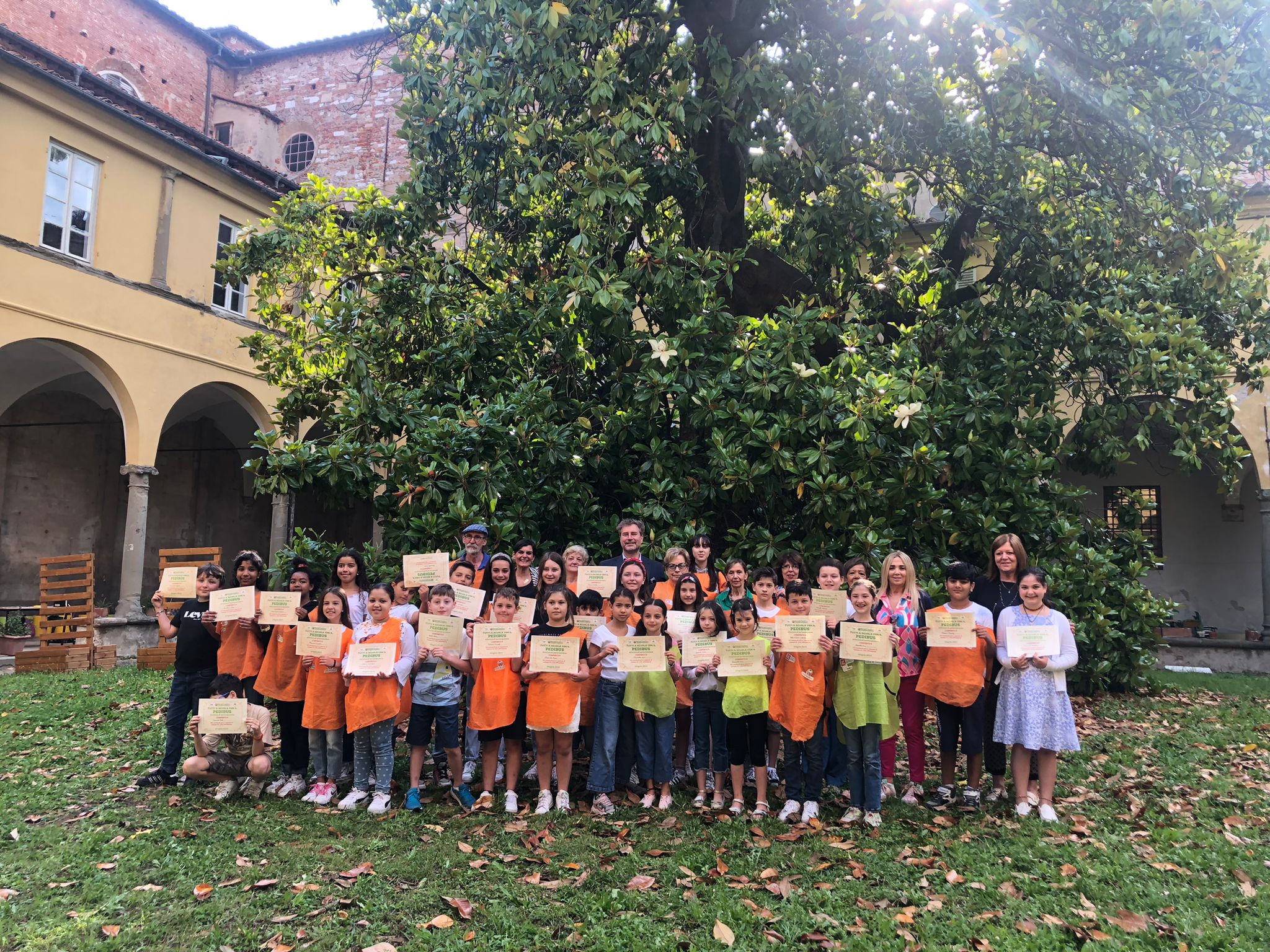 Stamani (8 giugno) nel cortile della scuola primaria “Pascoli”, l’amministrazione comunale, insieme ad Auser Lucca Solidale Odv, ha consegnato gli attestati di partecipazione ai bambini che hanno aderito al Pedibus durante l’anno scolastico 2022/2023, per ringraziare loro e le loro famiglie di aver partecipato a questa iniziativa che contribuisce alla riduzione dei gas di scarico e di conseguenza, dell'anidride carbonica nell'aria, migliorandone la qualità.