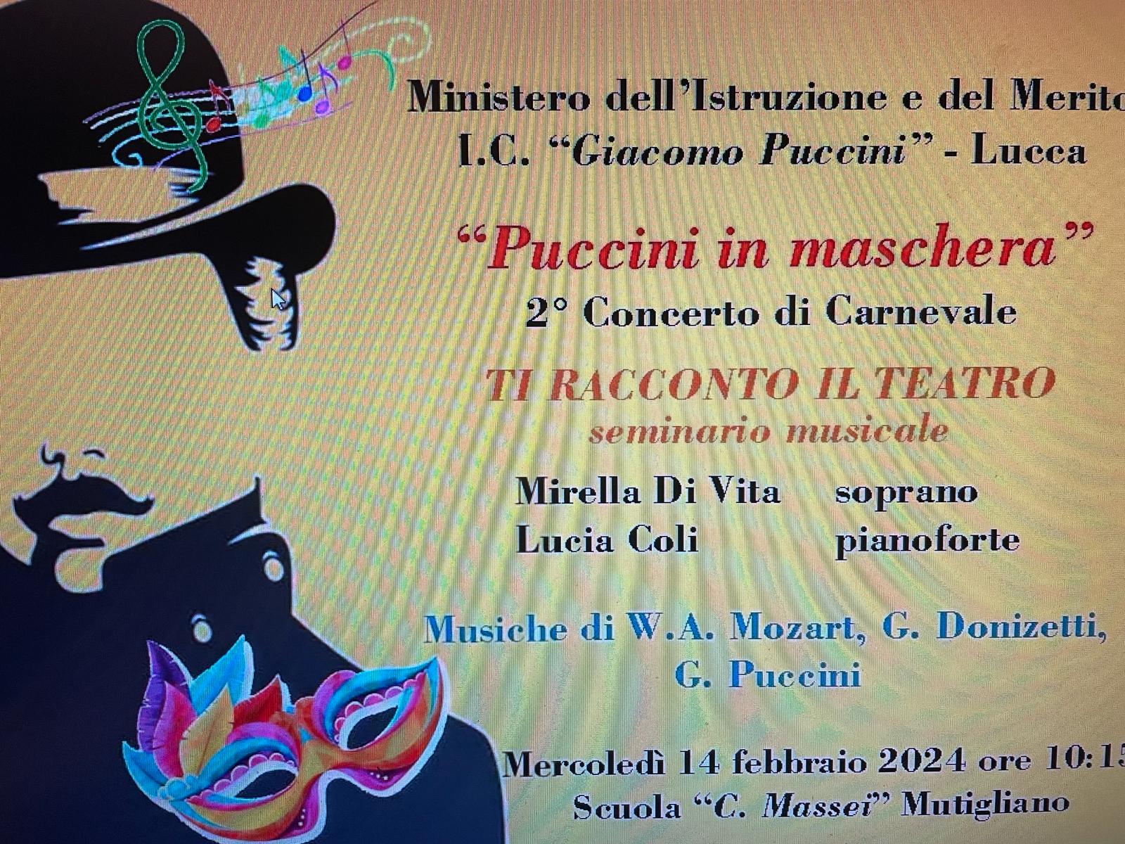 Nell’ambito del progetto musica dell’Istituto Comprensivo G. Puccini a cura degli insegnanti referenti Prof. Antonio Della Santa e Prof.ssa Lucia Coli, condiviso con la Dirigente Scolastica, si terrà il giorno 14 febbraio alle ore 10,15 presso la scuola “C. Massei” di Mutigliano un seminario musicale dedicato alla musica operistica e alle professioni legate al mondo del teatro, con particolare attenzione alla figura del Maestro Puccini.