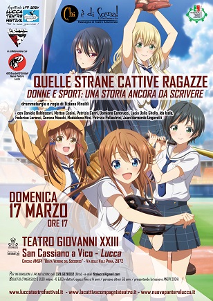 Storie di donne che hanno superato i loro limiti e che si sono fatte largo nello sport, apportando così un importante contributo nell'emancipazione femminile, oggi la loro storia diventa un'opera teatrale per portare il loro esempio ai giovani. In anteprima nazionale una nuova produzione de La Cattiva Compagnia Teatro dal titolo "Quelle strane cattive ragazze - donne e sport: una storia ancora da scrivere", realizzata In collaborazione con ASD Baseball & Softball Nuove Pantere di Lucca, domenica 17 marzo, alle ore 17, al Teatro Giovanni XXIII di San Cassiano a Vico a Lucca (Circolo ANSPI "Beata Vergine del Soccorso" - via delle Ville Prima, 2872).