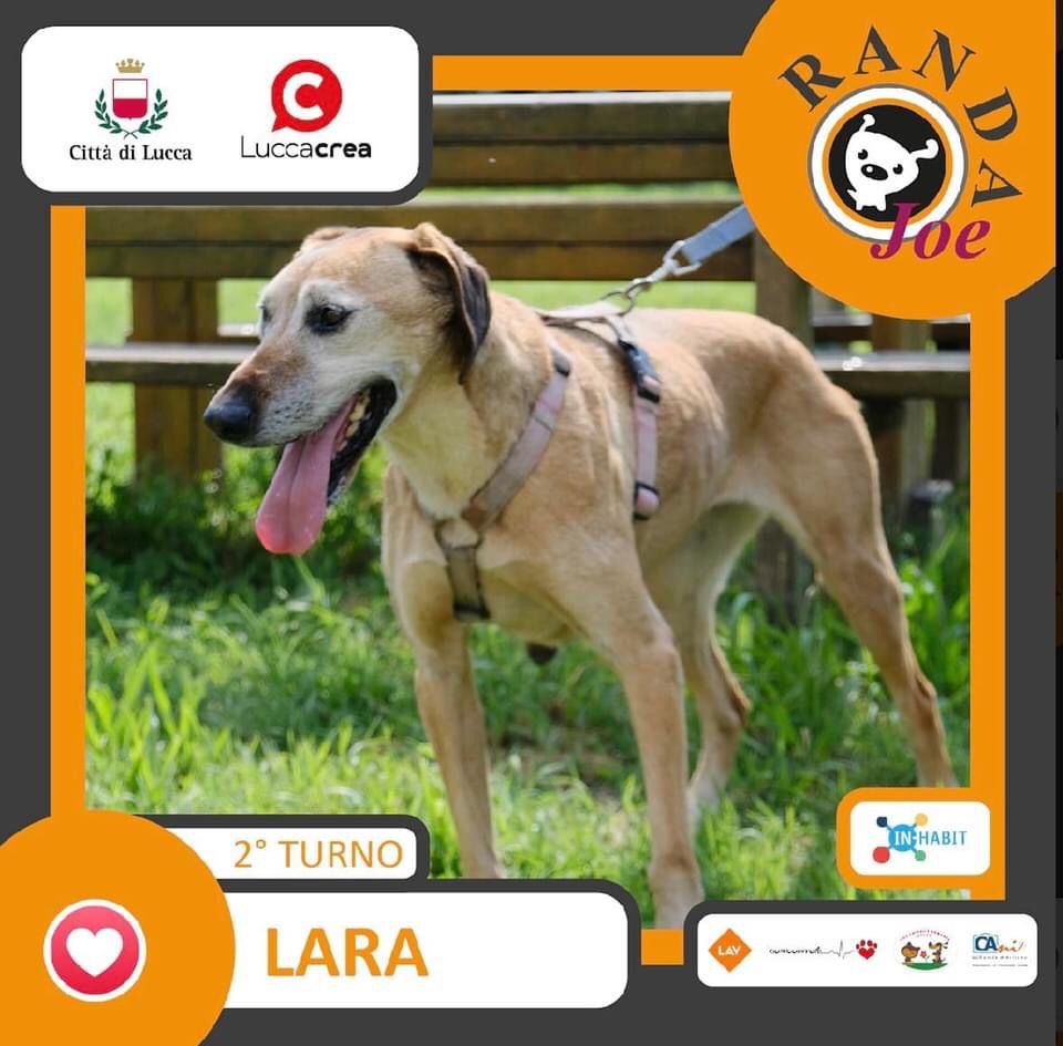 In barba all’età, Lara è una cagnolina molto energica e vivace. Proprio non li dimostra i suoi dieci anni. Le piace molto giocare, in particolare con la pallina, il suo passatempo ludico preferito. Non è intimorita dall’uomo, anzi, in sgamabatura è partecipe ed ubbidiente. È abituata alla compagnia di altri cani ed a stare in casa. Il cuoricino è l’emoticon per votarla.