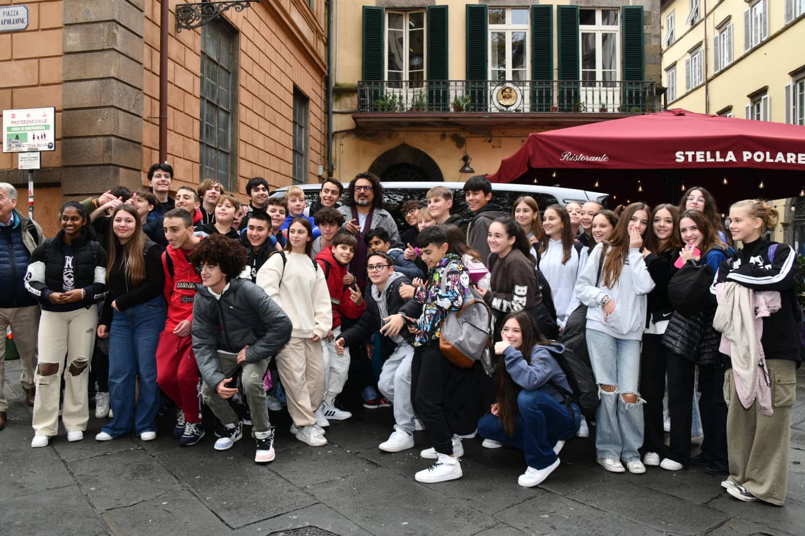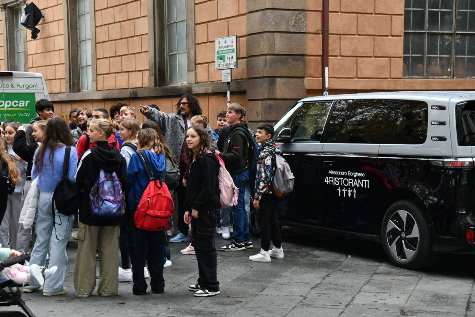Alessandro Borghese, figlio di Luigi e di Barbara Bouchet, attrice icona degli anni Settanta, è arrivato a Lucca nella serata di lunedì e ha alloggiato, con la troupe e il suo staff in un albergo della immediata periferia. Poi, questa mattina, è entrato in città dove, poco dopo le 12.30, alla Stella Polare, ha incontrato la giunta con tanto di sindaco in testa che si è fatta immortalare di fronte all'ingresso di Cortile degli Svizzeri.