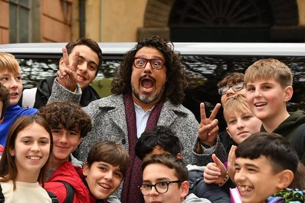 Alto e grosso, più alto che grosso, un sorriso che conquista, il pizzetto alla D'Artagnan, capelli ricci e lunghi sulle spalle, con indosso un cappotto grigio e scarpe del medesimo colore, lo chef della trasmissione Tv più seguita del settore si è regalato ai suoi fans a cominciare da un folto gruppo di bambini-adolescenti che non si sono voluti fa fuggire l'occasione. Poi, qualche scatto con giornalisti, assessori, passanti e, perfino, una dipendente delle Poste in tyransito con il suo veicolo ecologico. Un sorriso per tutti, una parola a chiunque gli ha voluto regalare un benvenuto nella città che ospiterà, da qui a venerdì, una puntata di 4 ristoranti nel corso della quale si sfideranno altrettanti locali lucchesi del centro storico.