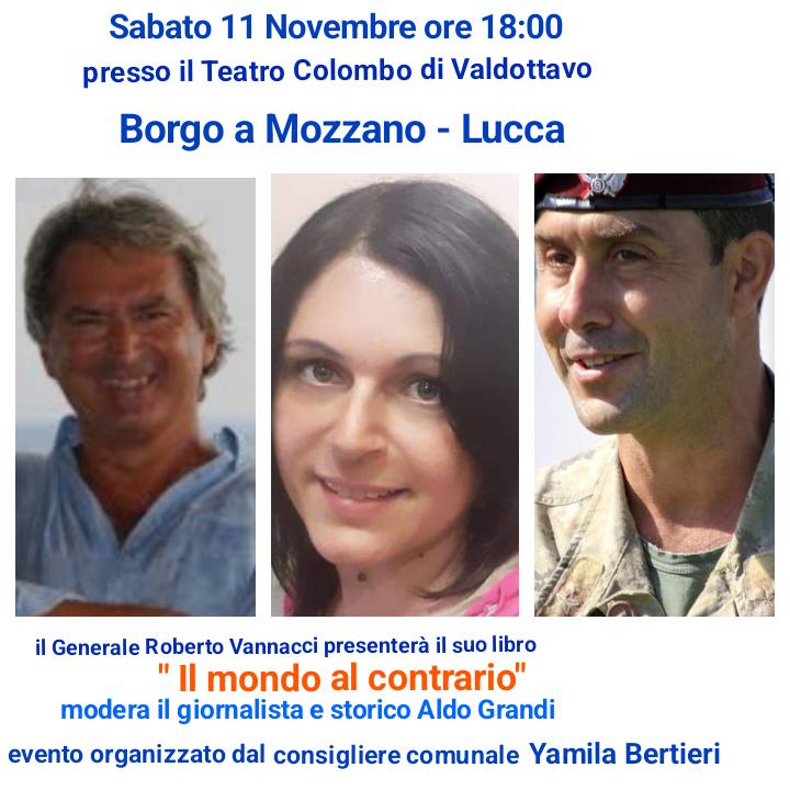 Sold-out questo sabato 11 novembre al teatro Colombo di Valdottavo. A quanto pare la presenza del generale Roberto Vannacci è molto ben gradita in quel di Borgo a Mozzano. Molte le adesioni e i messaggi che il consigliere comunale Yamila Bertieri sta ricevendo dai cittadini sia per poter partecipare alla presentazione del libro di Vannacci "Il mondo al contrario" presso il Teatro Colombo di Valdottavo alle ore 18 sia per il locale "L'Osteria I Macelli" di Borgo a Mozzano presso cui avverrà la cena dopo l'evento.