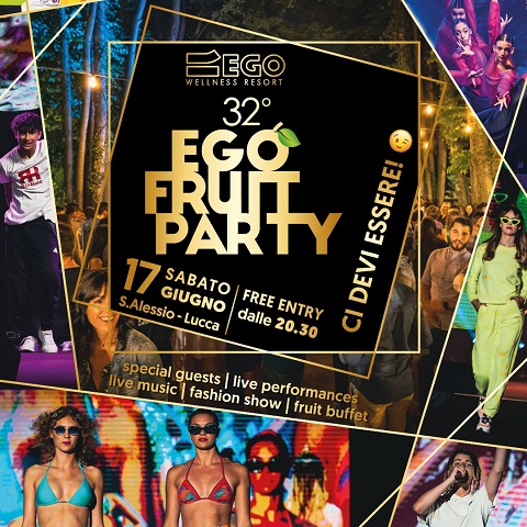 Sabato 17 giugno è tempo di estate con l'Ego Fruit Party, ormai una tradizione dell'inizio estate giunta alla sua trentaduesima edizione, che invita tutti a ritrovarsi nello straordinario Ego Park, nel cuore del Resort di S.Alessio a partire dalle 20.30 con ingresso libero.