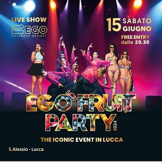 Sabato 15 giugno è tempo di Estate con Ego Fruit Party organizzato da Ego Wellness Resort, che da oltre 40 anni orienta al benessere lo stile di vita dei lucchesi con il ricco palinsesto fitness delle sue attività e i tanti appuntamenti speciali., volti alla sensibilizzazione sui benefici del movimento e anche al piacere della socializzazione. Tra questi l'Ego Fruit Party è uno degli appuntamenti più attesi ed iconici, accende l'inizio dell'estate e invita tutti a ritrovarsi nello straordinario Ego Park, nel cuore del Resort di S.Alessio a partire dalle 20.30 con ingresso libero.