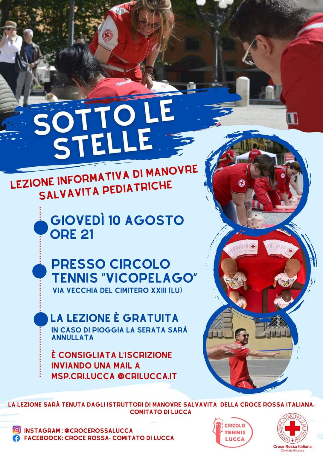 Stelle cadenti... ma non solo! Giovedì 10 agosto alle 21, presso il circolo del Tennis di Vicopelago, si terrà la lezione gratuita di manovre salvavita pediatriche organizzata dalla Croce Rossa Italiana del comitato di Lucca.