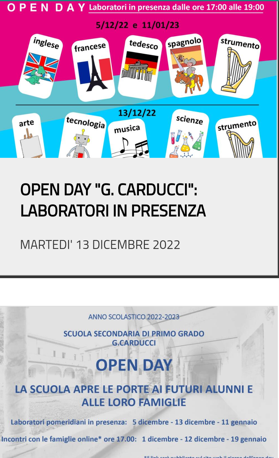 Si moltiplicano, per coloro che fossero interessati ad iscrivere i propri figli alla scuola secondaria di primo grado G. Carducci dell'istituto comprensivo centro storico di Lucca, le possibilità di partecipare ai cosiddetti "Open Day".