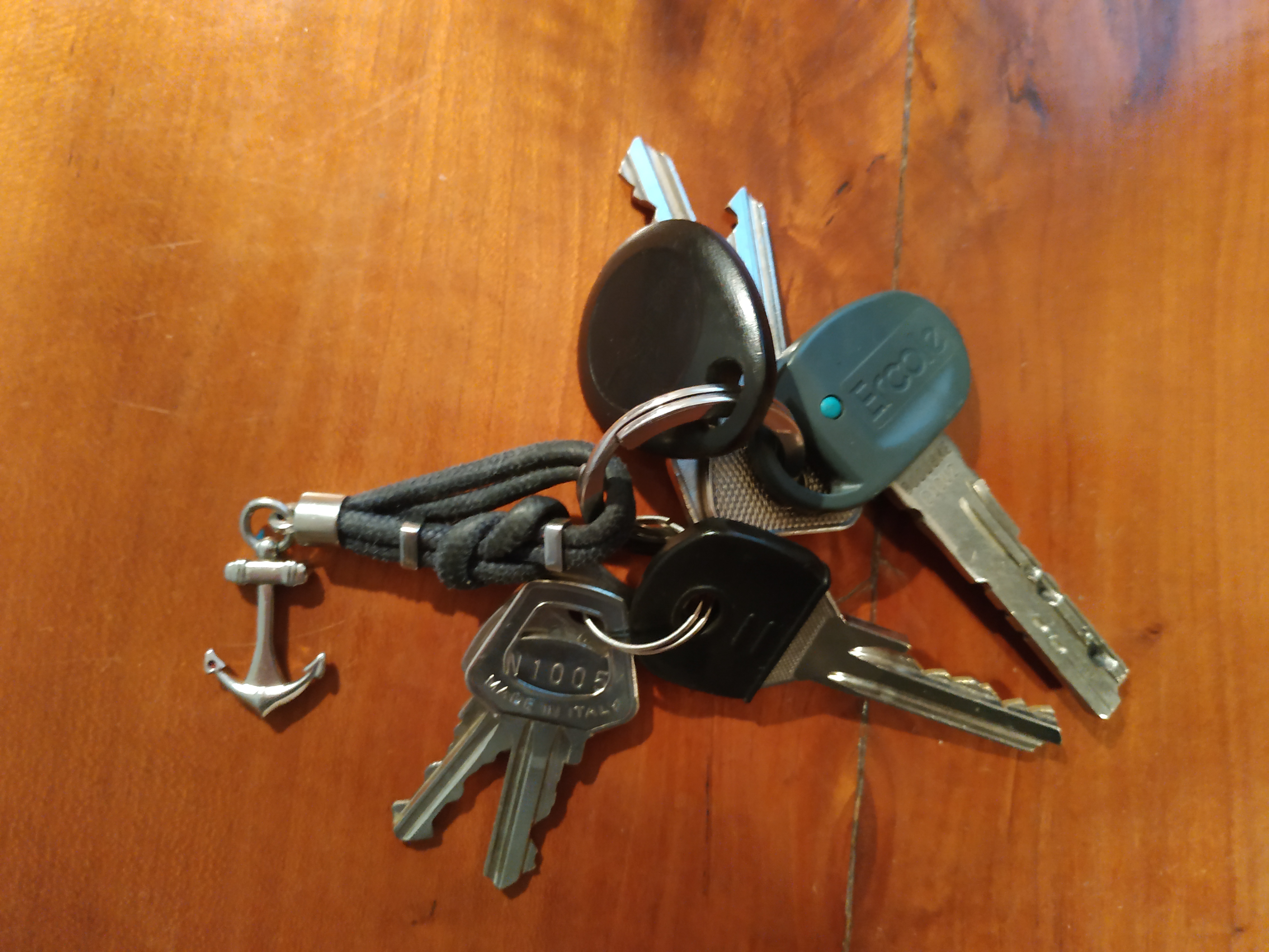 Il mazzo (come si evince dalla foto) conta sei chiavi, di cui una con un rivestimento in gomma nero e una, più grande, riportante la marca "Ercole FBS" (per porte blindate di lusso e ingressi architettonici). Come portachiavi, un laccetto con all'estremità un'ancora e un presumibile pulsante in plastica, nero, con sopra riportato un codice di 11 caratteri (tra numeri e cifre).