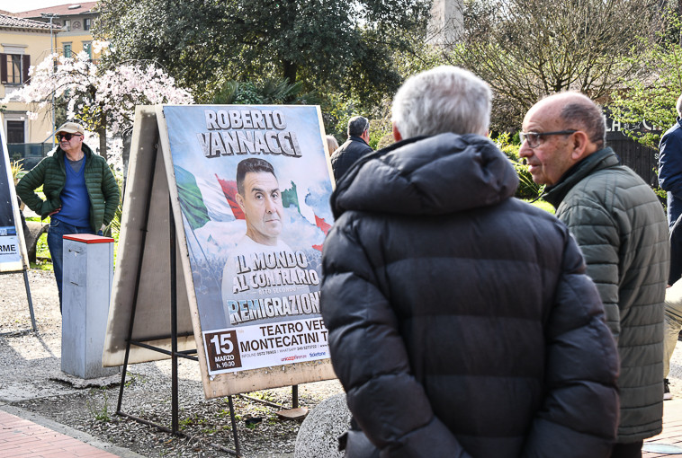 Niente male diremo anche noi. Tanto per restare in tema con il mainstream del sistema si può definire un vero successo la prima teatrale a Montecatini di Roberto Vannacci. Attore, come qualcuno lo ha voluto definire, apprezzato dal suo pubblico in mezzo a comparse spesso fischiate che hanno l’unico scopo di rappresentare la nostra società evoluta occidentale come quella colpevole. E la sua colpevolezza è solo quella di avere un certo tipo di valori identitari, come quello religioso, familiare, avere, cioè, tradizioni e abitudini che per loro sono nefandezze. Società, sempre secondo loro, che andrebbe cambiata con nuovi modelli fatti di meticciato, fluidità e chi più ne ha più ne metta.