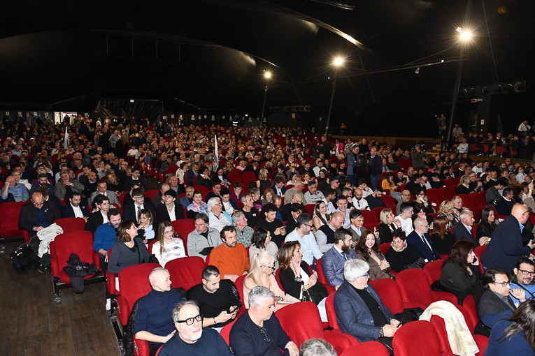 Un attore che debutta in teatro, come lo hanno definito. Invettive che possiamo anche capire, visto il successo sul “palcoscenico politico” che sta avendo, anche quello del teatro Verdi dove oggi ha rappresentato il secondo atto. Gioco facile come attore per Vannacci, viste le tante mediocri comparse sul “teatrino politico italiano” in questi ultimi tempi. Eh si, è proprio vero, non ci sono più i politici di una volta. Comparse che sono arrivate anche sul maxi-schermo del teatro Verdi, allestito con un palcoscenico minimalista illuminato con i colori della nostra bandiera.