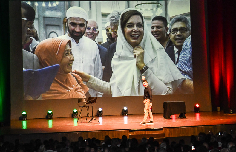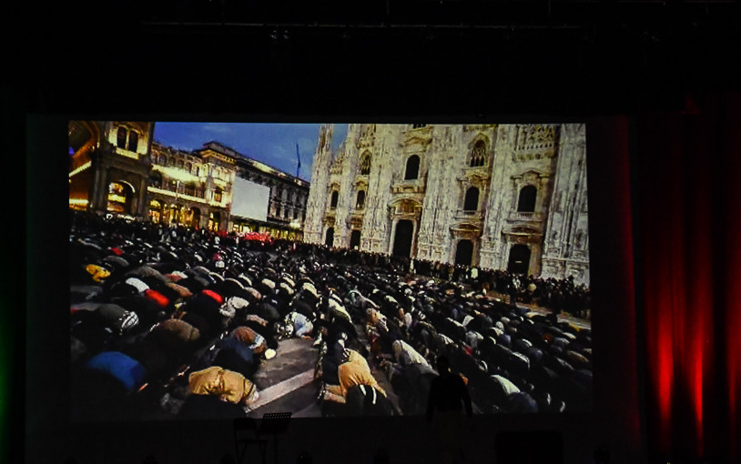 Un comizio-spettacolo quello di oggi a Montecatini. L’invasione dei clandestini ed in particolare di quelli di religione islamica è il primo argomento trattato mentre sul maxischermo, in contrapposizione a quanto la realtà ci propone al momento attuale, passa un video con immagini valoriali con una voce che richiama all’identità nazionale e religiosa cristiana. Valori collettivi di un popolo, quello italiano, che si identifica e accumuna in tali valori.