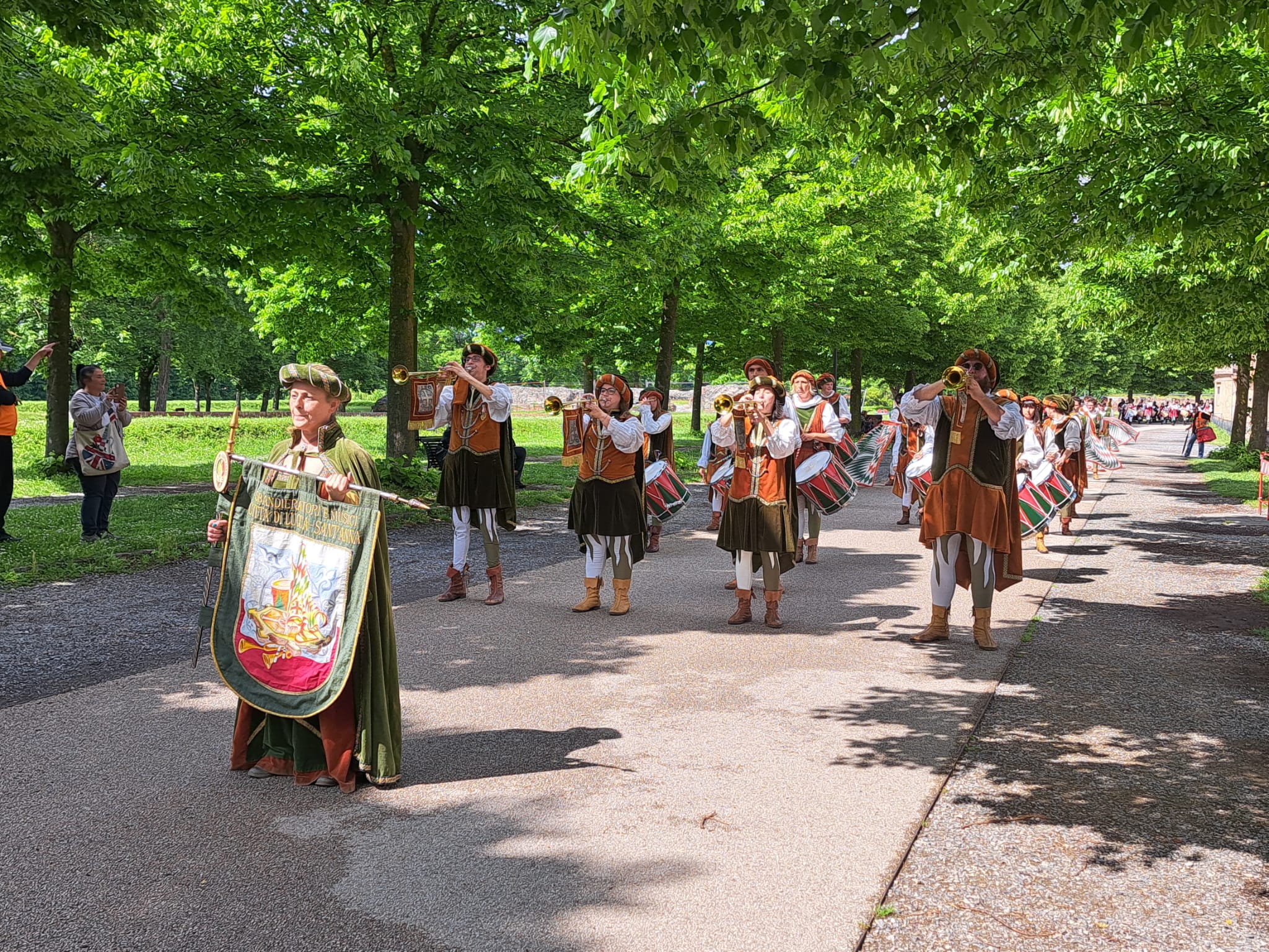 La decisione prese nelle primissime ore del pomeriggio di sfidare le nubi che coprivano il cielo su Lucca e di svolgere la manifestazione all’aperto ha premiato gli Sbandieratori “Città di Lucca” e l’Esecutivo della Lega Italiana Sbandieratori che hanno permesso così alla città di godere dello spettacolo del Corteggio Storico che ha visto sfilare sulle Mura oltre 350 tra sbandieratori, tamburini e chiarine.