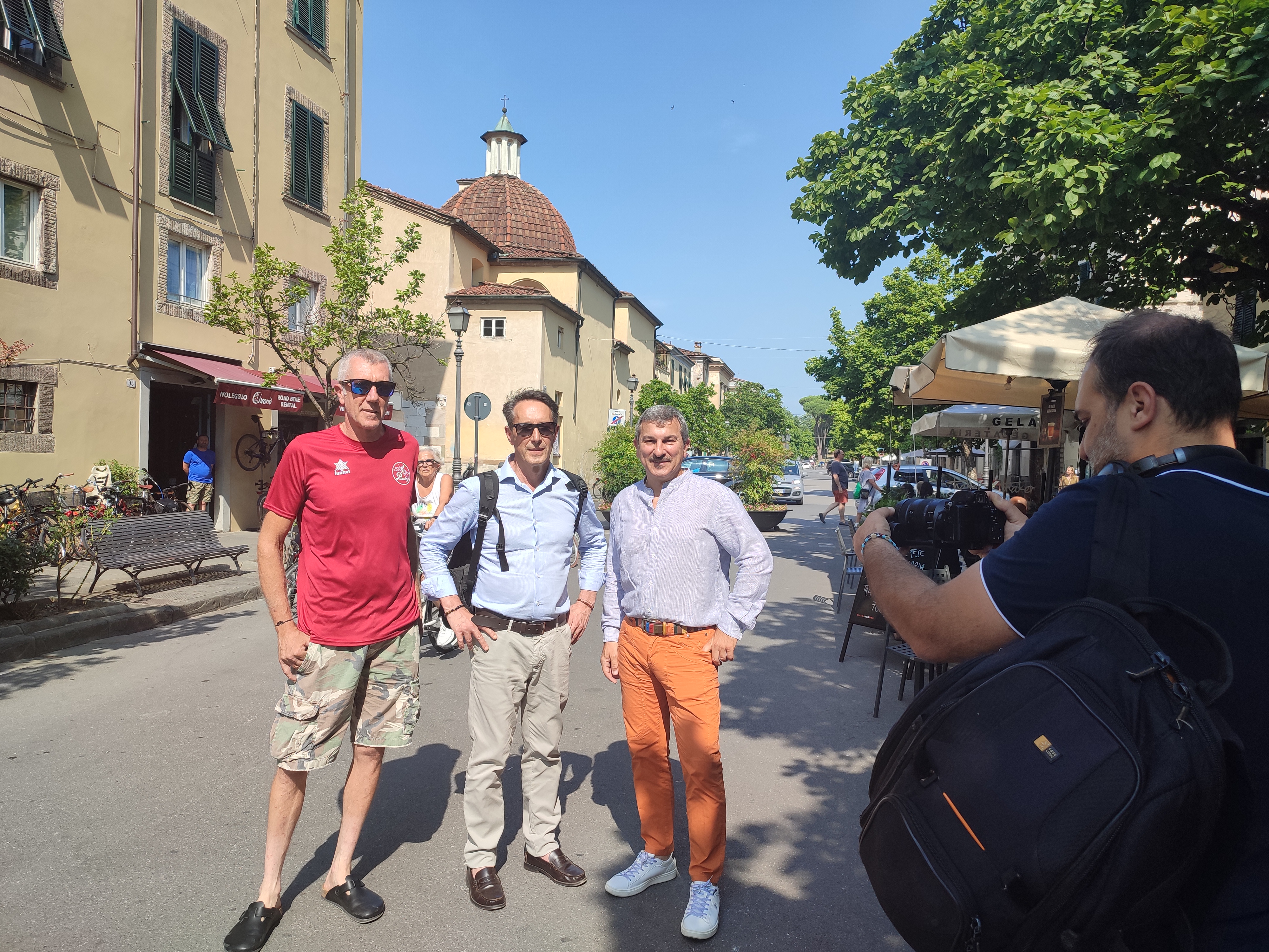Molte le immagini inedite della città, per un ampio servizio Rai dove si parlerà della riscoperta della bicicletta, dei suoi benefici per la salute e dove verranno indicati i più affascinanti luoghi per pedalare in mezzo alla natura, a pochi passi dalla città. L’inviato Stefano Miceli, dopo essere partito da piazza Cittadella, davanti alla statua del Maestro, ha attraversato porta San Donato fino alla terrazza Petroni per iniziare la pedalata lungo la ciclabile che celebra la vita e i luoghi di Puccini, accompagnandosi con la suggestiva esperienza musicale, accessibile attraverso i QR code sul percorso, che consentono di ascoltare le sinfonie del grande compositore da Lucca fino a Torre del Lago.