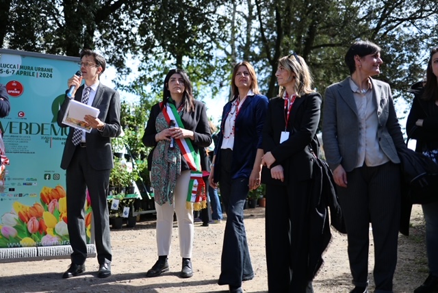 Al taglio del nastro fra le tante autorità presenti: l'assessore alla cultura Mia Pisano, insieme agli assessori alle attività produttive Paola Granucci, all'ambiente Cristina Consani e all'istruzione Simona Testaferrata, l'onorevole Elisa Montemagni, l'assessore regionale Stefano Baccelli, il questore Edgardo Giobbi, il vice prefetto vicario Giuseppina Cassone, la dirigente dell'ufficio scolastico di Lucca Ilaria Baroni, insieme al presidente di Lucca Crea Nicola Lucchesi e al direttore generale Emanuele Vietina.