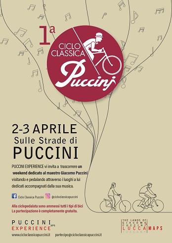 Al via la prima edizione della Cicloclassica Puccini, che si terrà nel primo fine settimana di aprile, domenica 3 aprile 2022 con partenza libera da piazza del Giglio a Lucca dalle ore 9 alle ore 10, con flash mob pucciniani organizzati lungo il percorso, per un fine settimana all'aria aperta in sella alla propria bici insieme a professionisti sportivi del territorio.