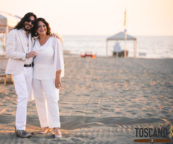 Proviamo a coniugare la voglia del bello con una buona dose di gusto, il tutto annaffiato con una discreta dose classe e tanta voglia di stare insieme per condividere momenti indimenticabili. Risultato una serata evento che segna in modo indelebile il sentiment dei partecipanti. Tutti esclusivamente in quel “dress code total white” che condiziona indiscutibilmente il contesto in cui ti trovi, esaltandolo ed evidenziandolo in tutta la sua bellezza. E tutto questo resto possibile dal connubio, estremamente professionale, di intenti per fare stare bene ospiti esigenti. Stiamo parlando di due realtà del gusto, possiamo affermarlo tranquillamente. La prima è quella del Club Gusto Toscano di Luca Piattelli, presidente instancabile e iperattivo, vera e propria eccellenza nel campo della ricerca del gusto nel fumo del sigaro abbinata all’altra realtà oserei sempre dire nel campo del gusto nelle sue varie accezioni; quella della struttura balneare versiliese Danilo Beach Club, nella quale la classe e la qualità nell’ospitare fanno da padroni, senza inutili sfoggi. Una classe che si è riscontrata fin da subito, all’ingresso nella struttura. Una lunga tavolata organizzata sulla sabbia con a lato le due file di tende con le sdraio, inequivocabilmente di colore bianco. Una sorta di lungo nastro che si dipanava dalle strutture dello stabilimento balneare fino a quasi lambire, quasi a tuffarsi, in quel mare che stava esaltando un tramonto mozzafiato. Una “quinta teatrale” di sfondo a quel contesto sapientemente creato, giusto tributo di quella che sarebbe stata di lì a poco, la serata evento. Meglio detto un vero evento di serata, illuminata da una luna complice che ha fatto a gara con i lampadari a goccia che sembravano calati da quella cortina celeste che per tutto il tempo ha avuto un ruolo di protagonista accompagnando i commensali. Insomma un ambiente idilliaco, con un giusto richiamo retro, nel quale tutti gli ingredienti erano sapientemente dosati per garantire un benessere totale, una vera prova, in tutti i sensi, dei nostri sensi. E per ultimo, non di minore importanza, il clima e la temperatura che, dopo una giornata più afosa, a quell’ora ha riservato la gradevole sorpresa: non era neppure caldo, sembrava di vivere in un ambiente condizionato alla giusta temperatura e grado di umidità. Insomma tutto ai massimi livelli sensoriali.