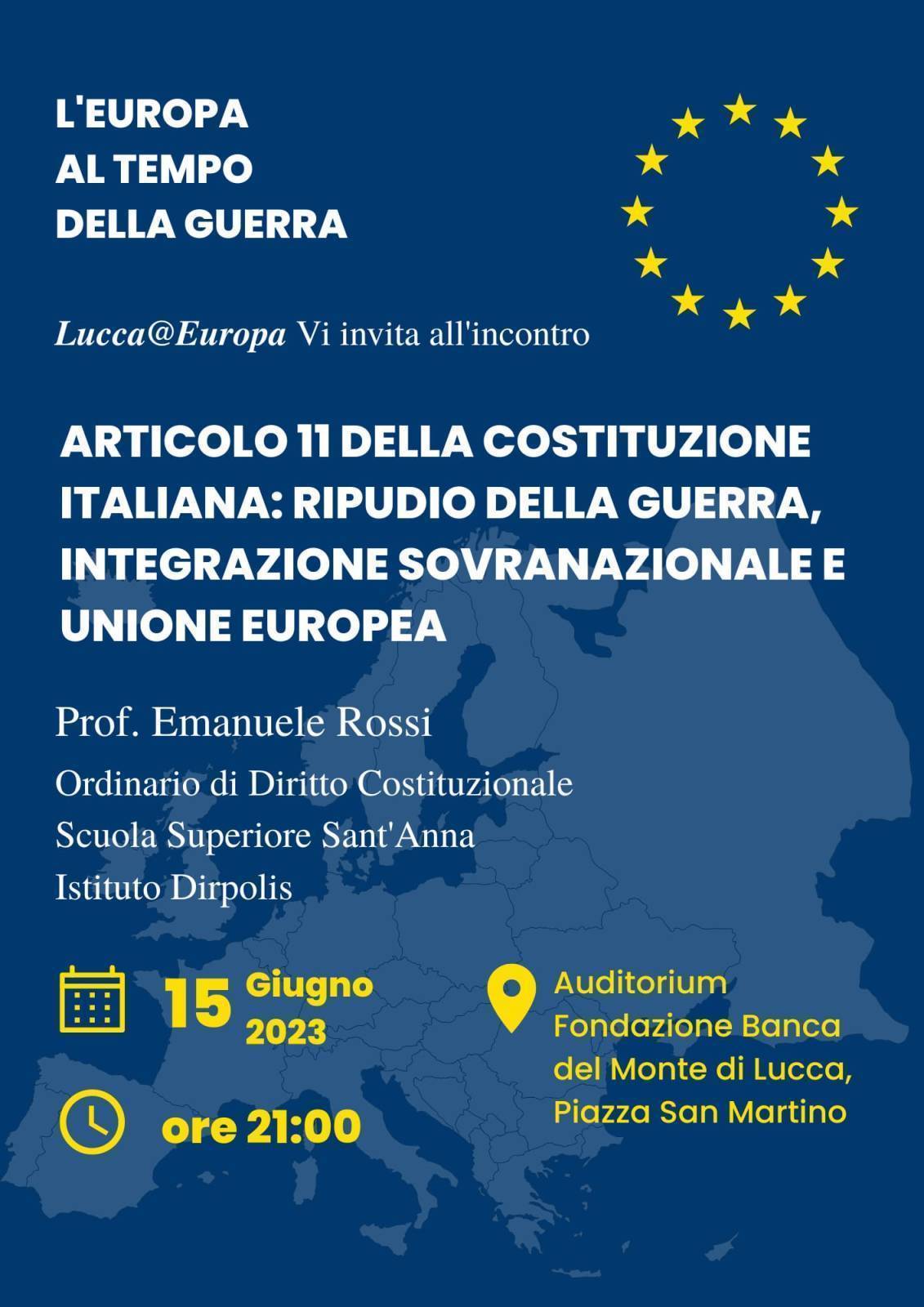 Riparte da questi temi il ciclo di appuntamenti L'Europa al tempo della guerra organizzati da Lucca@Europa, con il quarto incontro - in programma giovedì 15 giugno alle 21 nell'Auditorium della Fondazione Banca del Monte di Lucca in piazza San Martino – che ospiterà Emanuele Rossi, professore ordinario di Diritto costituzionale alla Scuola superiore Sant'Anna di Pisa, dove è stato preside e prorettore vicario.