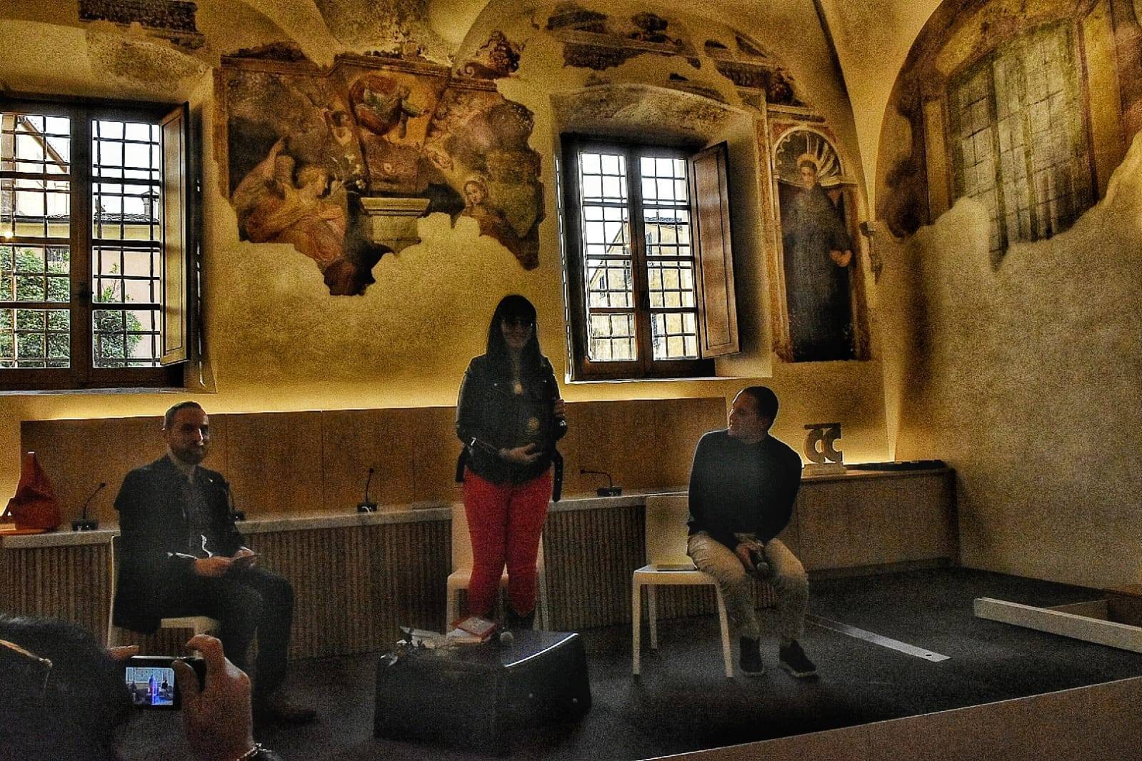 Sul palco con Manuel Merani, Nicholas Paoli ha mirabilmente condotto un’intervista lasciando i giusti tempi per scoprire i libri, senza svelare troppo della storia, ma creando molti punti interrogativi per incuriosire i lettori; curiosità alimentata anche grazie alla bravura di Andrea Cella, che ne ha letto alcune parti.