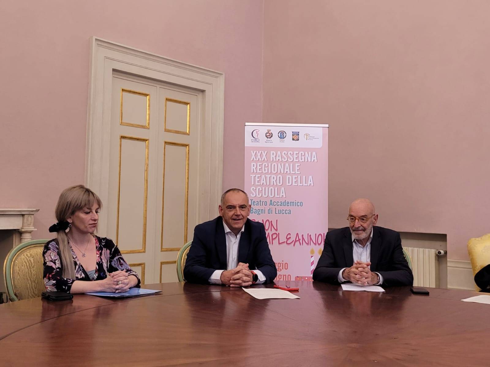 Torna la tradizionale rassegna regionale "Teatro della Scuola": giunta alla sua trentesima edizione, si svolgerà a Bagni di Lucca dal 20 maggio al 4 giugno. "Questa bellissima manifestazione ha raggiunto un traguardo importante che deve essere celebrato" ha affermato il presidente della provincia di Lucca Luca Menesini, nell'incontro di presentazione tenutosi oggi 17 maggio a Palazzo Ducale; e ha una certa rilevanza che sia stata presentata in provincia un'iniziativa del genere, che ha ormai assunto importanza a livello non solo regionale, ma anche nazionale, arrivando anche a spaziare oltre. "Io ho vissuto la nascita della rassegna, nel 1993, come dipendente del comune, e da allora l'ho vista crescere enormemente- ha osservato, non senza orgoglio, il sindaco di Bagni di Lucca Paolo Michelini- Sono stati raggiunti dei livelli davvero importanti: nel 2018 e 2019 hanno partecipato studenti da ogni parte d'Italia, dal Molise al Trentino, e abbiamo visto la partecipazione persino di alcune scuole straniere".