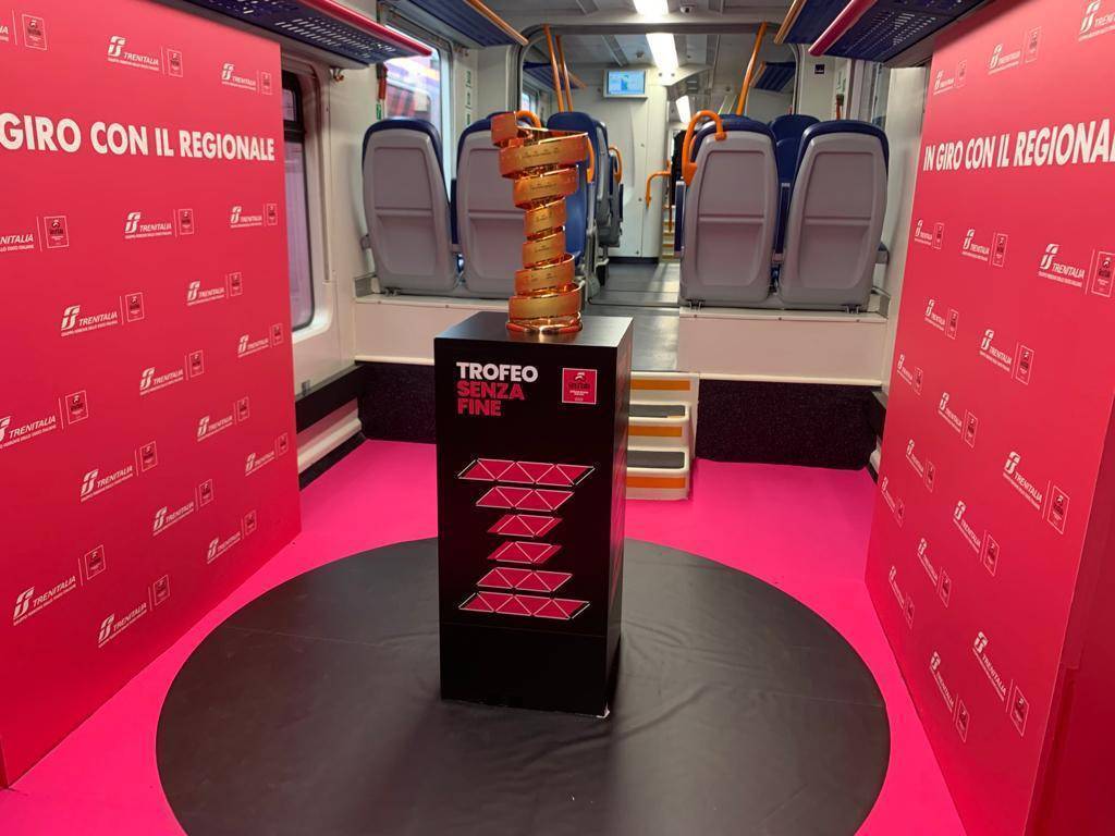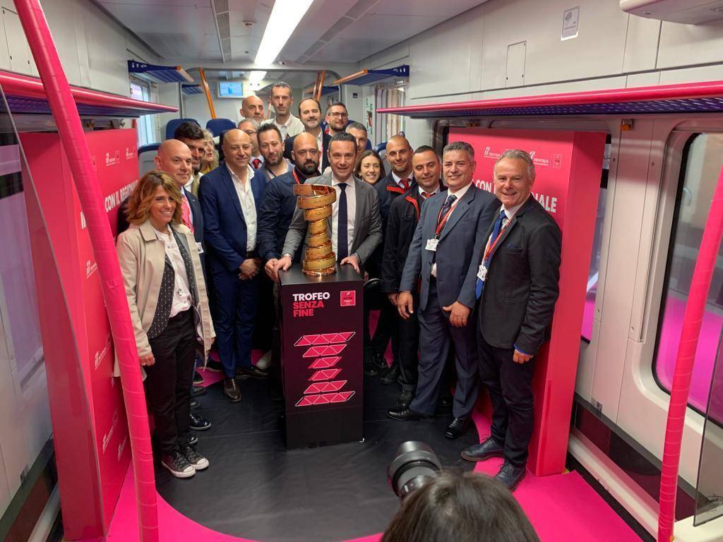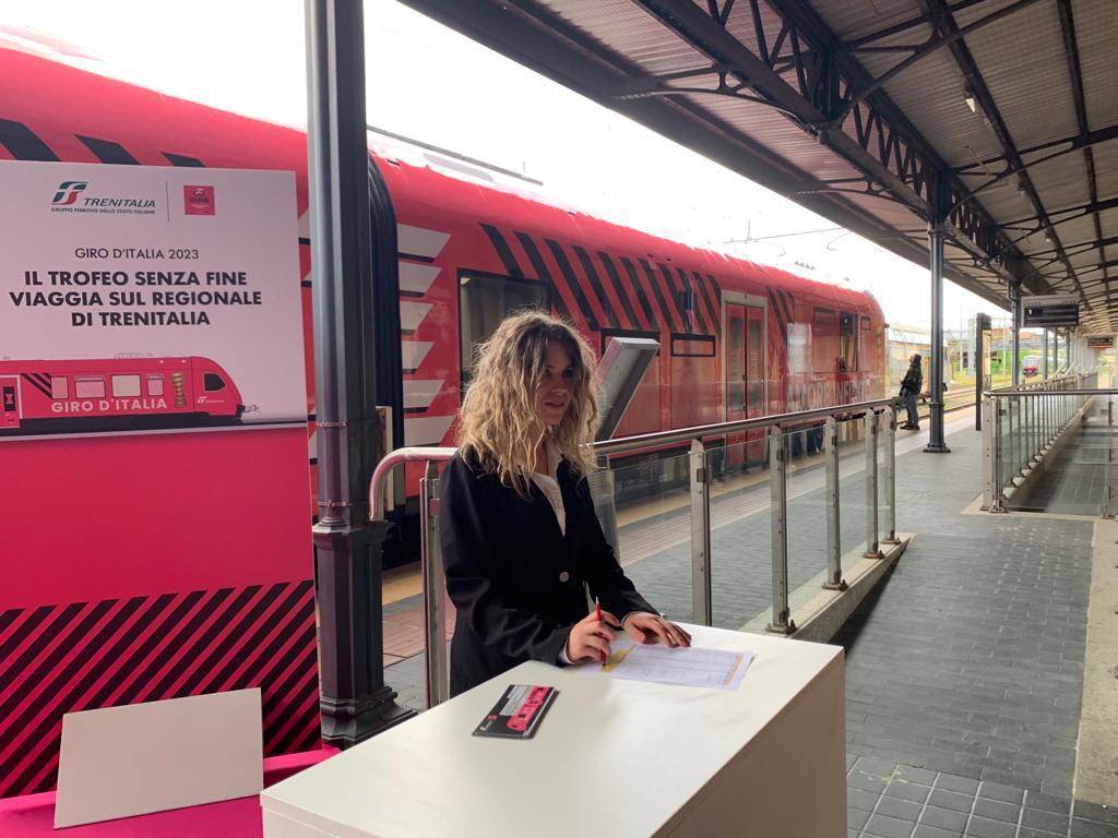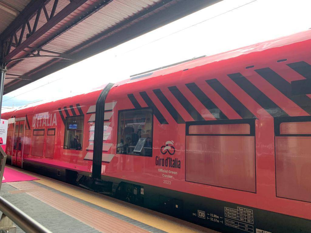 Proviamo a seguire il Giro d’Italia sempre con una carovana, tutta raccolta però, in un convoglio ferroviario, che fiancheggia la vera carovana rosa: quella del Giro d’Italia.