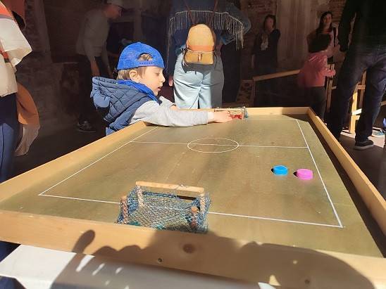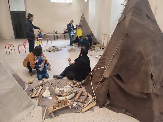 Gli ampi spazi interni della struttura sono stati suddivisi in tante aree tematiche, nelle quali i bambini di tutte le età potevano sbizzarrirsi in tante attività, sia ludiche che didattiche. C’era una fornitissima area preistorica, con ricostruzioni, laboratori e dimostrazioni pratiche di varia oggettistica dell’epoca, illustrazione di tecniche degli uomini preistorici, come l’accensione del fuoco o la lavorazione dei vari materiali. Un ampio spazio era dedicato ai giochi di una volta, con più di 50 giochi artigianali tra cui una pista delle biglie. Nell’area creativa si svolgevano laboratori, letture e teatrini; molto gettonata l’area lego, dove i bambini potevano giocare in libertà con le costruzioni o partecipare agli speciali laboratori insieme agli animatori; c’era poi l’area dedicata alla musica, con dimostrazioni pratiche, cori, esibizioni strumentali, baby dance; l’area spettacoli con fiabe animate e musical. Naturalmente non mancava una fornita area food e un’area artigianato per chi desiderasse un ricordo della giornata.
