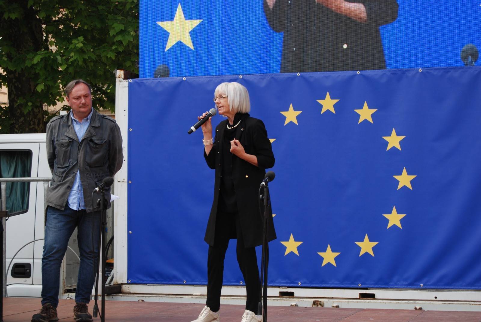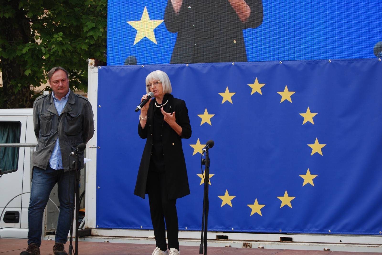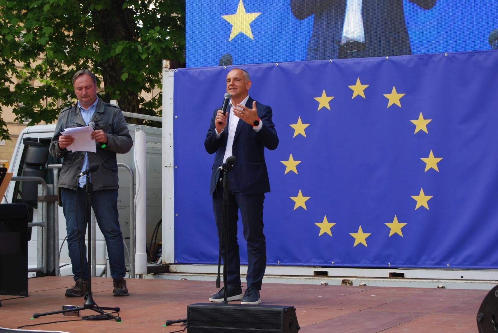 "Sono molto contento di vedere le tanti classi che abbiamo incontrati durante tutti i nostri incontri qui riunite oggi per festeggiare l'Europa - ha esordito Luca Menesini, presidente della provincia di Lucca -. Spesso abbiamo la sensazione che l'Europa e le sue istituzioni rimangano per noi qualcosa di lontano e astratto, chiuso nei palazzi di Bruxelles. È su questo che come provincia di Lucca abbiamo voluto lavorare, rivolgendoci a coloro che nella nostra Europa sono nati e stanno crescendo: i nostri giovani."