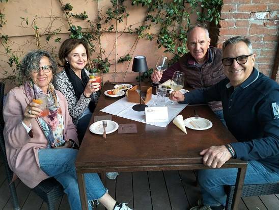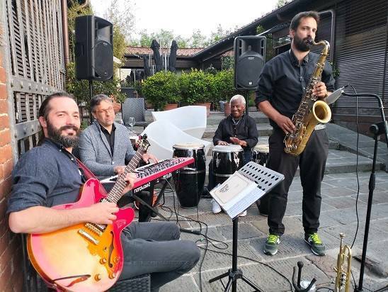 E tra uno sguardo all’auto e uno al buffet, è facile lasciarsi trasportare dal suono dei Soul Garden Trio. L’atmosfera però si incendia al crepuscolo, quando il sole si accascia delicatamente sulle montagne e colora il cielo di arancione. Il colore dello Spritz sui tavoli.