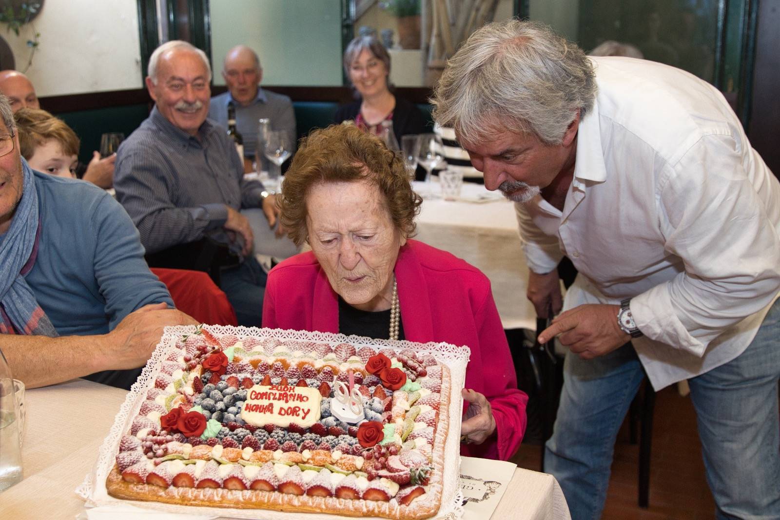 Vabbè dai, erano solo 98 primavere e il sindaco, in genere, arriva quando sono 100, ma questa volta, trovandosi a passare di lì per la presentazione di un libro a Villa Bottini, ha pensato bene di fare un salto. Sì, proprio così: a pranzo quasi ultimato ecco che, sull'uscio del ristorante di Silvia Pacini e Samuele Cosentino, Gli Orti di via Elisa, è comparso, ma dovremmo dire, piuttosto, apparso nemmeno fosse, realmente, una apparizione, Mario Pardini con quel suo sorriso che trasmette, invariabilmente e inevitabilmente, un sano ottimismo quando, in genere, i politici sanno trasmettere solamente il desiderio di toccarsi gli attributi.
