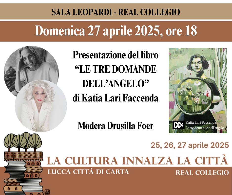 Gianluca Gori, alias Drusilla Foer, sarà invece al Festival domenica 27 aprile alle ore 18.00 nell’inusuale ruolo di moderatrice del libro di Katia Lari Faccenda, amica storica di Drusilla. Il volume si intitola ‘Le tre domande dell’angelo’ ed è un romanzo sui generis che si ispira al passaggio emblematico di Jeanne d’Arc nella storia. “Ho scelto il libro di Katia Lari Faccenda – spiega Drusilla - perché mi ha condotto in un luogo prezioso. Un luogo dove la narrazione non si protegge dietro alle mura prepotenti del linguaggio letterario ma anzi lascia che la poesia irrori questo racconto di domande, dubbi, legami potenti, conflitti interiori, risposte sacre purezza che ispira. È un libro interno, dove la protagonista porta il suo sentire all’altrui sentire dando vita alla rivoluzione dell’anima. La più antica delle rivoluzioni e la più necessaria, la più appartenente. È questo il grande atto eroico di Giovanna che pretende partecipazione”.
