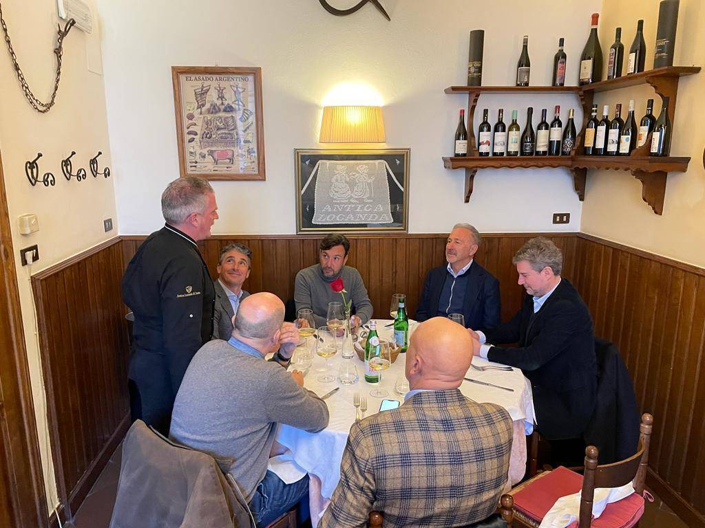 Quando arriva il momento di ordinare, si scoprono gli altarini e Mimmo D'Alessandro, nonostante tutto il ben di dio presente nel menù, sceglie lo sformato ai carciofi con fonduta al Baggiolo e, poi, una zuppa di cavolo nero: che vergogna! Per non parlare del Simonetti e di Pacini che, dovendo, poi, andare a lavorare, si limitano e si accontentano di un piatto di tortellini emiliani in brodo. Mancini interrompe la degustazione ricordando ai commensali che era appena uscita la notizia secondo cui Lucca era presente nei 36 posti più belli d’Italia secondo Condé Nast Traveller. Azz... L'assessore Remo Santini gongolerà tutto.