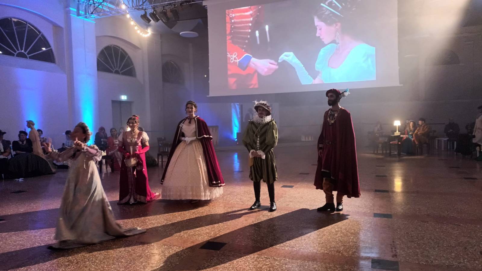 Come mai Dante Alighieri era al Gran Galà? Si sarà forse ritrovato nella selva oscura? A quanto pare no. Come lui molti altri personaggi storici - dal Medioevo fino ai tempi odierni - si sono ritrovati al ballo in maschera all'insegna del divertimento per festeggiare il carnevale. Dame e cavalieri hanno sfoggiato i loro abiti in tutto il loro splendore e danzato sulle note del "Minuetto" del Boccherini, eseguito un saltarello, ovvero una danza da corteggiamento e un giro di valzer. E tra un passo e una altro ecco che appare Paolina Bonaparte. Si, proprio lei, la principessa italiana e sorella di Napoleone, il generale francese e fondatore del primo impero e protagonista della cosiddetta "età napoleonica".