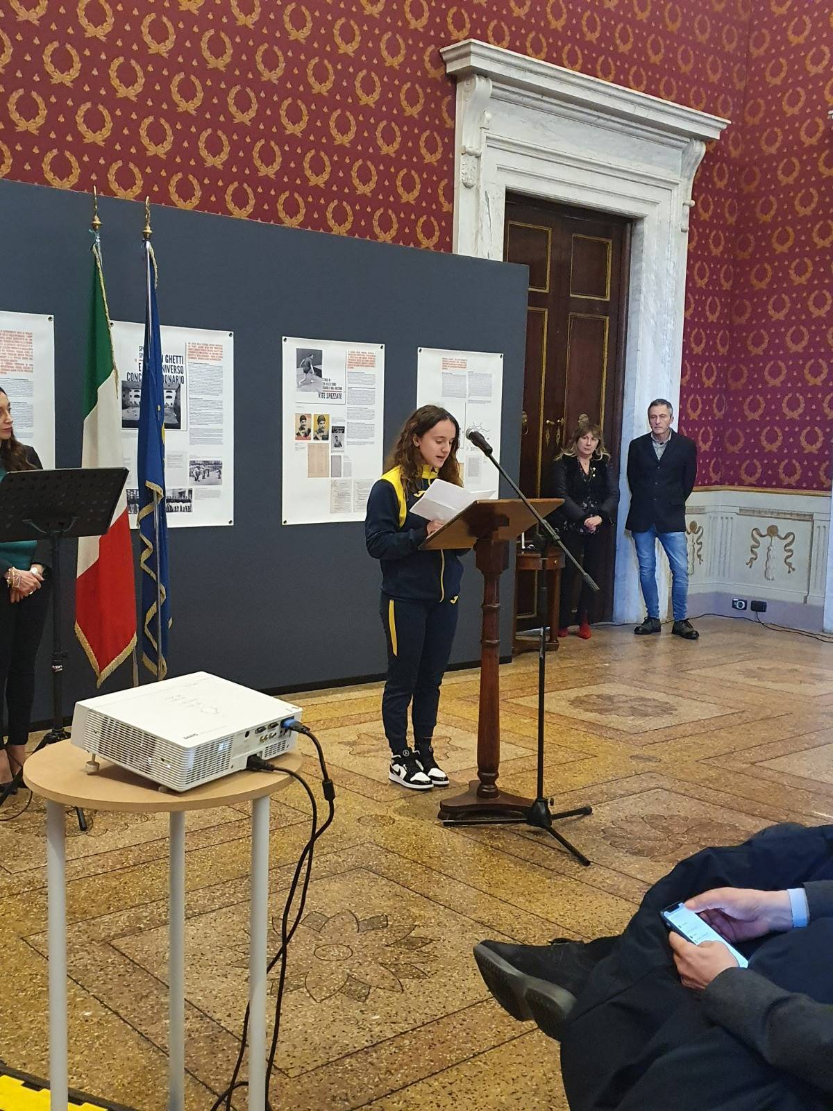 Quest'ultimo aspetto è stato ricordato da alcuni studenti della classe III C dell'istituto sportivo- polo scientifico tecnico professionale "E. Fermi- G. Giorgi", che hanno letto estratti del libro "Lo sport e le donne" della professoressa Simonetta Simonetti, riguardo le storie di due atlete ebree che, nella Germania naziste, furono ostacolate nel praticare la loro disciplina. "Noi, che siamo sportivi, conosciamo la passione, conosciamo i sacrifici, e conosciamo la delusione quando vengono vanificati. L'attività svolta in classe ci ha colpiti molto, e ci ha aiutato a capire meglio la vicenda" hanno affermato i ragazzi- ribadendo il valore educativo e positivo che lo sport può rivestire.