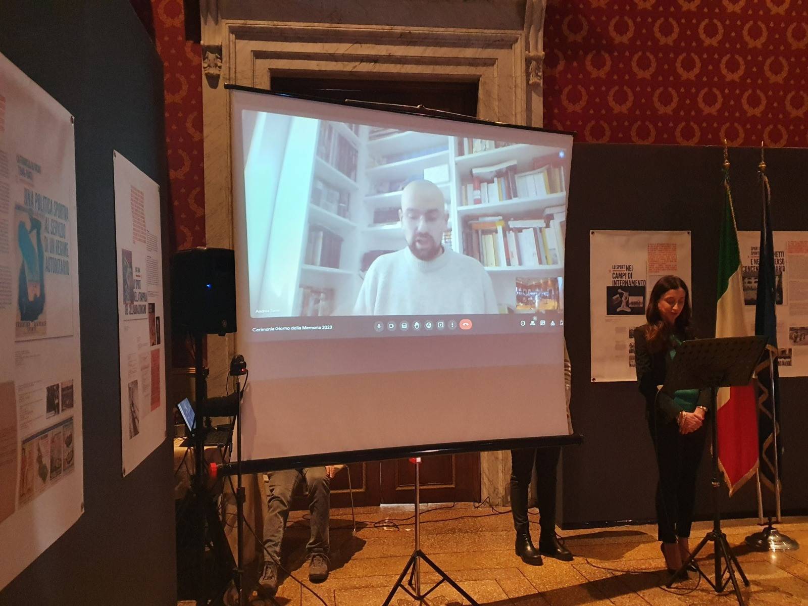 Sulla base di questo spunto è stata sviluppata una riflessione sul fatto che "la Shoah è il risultato di una discriminazione che ha operato in più settori, in più ambiti della vita quotidiana, anche apparentemente insignificanti", come ha osservato Lia Gennazzari, presente in rappresentanza della comunità ebraica. Tra questi ambiti, quello dello sport- significativo, in quanto attualmente oggetto della mostra "Sport, sportivi e giochi olimpici nell'Europa in guerra (1936-1948)", allestita proprio nella sala in cui si è tenuto l'evento di oggi. "Lo sport è una realtà neutra, che può portare avanti i più bei valori, ma può anche essere sfruttato come strumento di propaganda capace ci influenzare l'opinione pubblica" ha significativamente detto Esposito. Spunto sintetico ma pregnante che è stato colto e ampliato da Andrea Torre, dell'Istituto Storico della Resistenza, in un ampio e affascinante intervento sull'impiego dello sport nell'ambito della propaganda fascista.