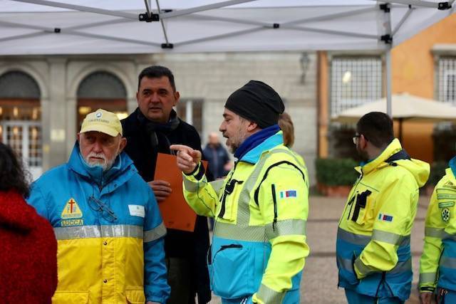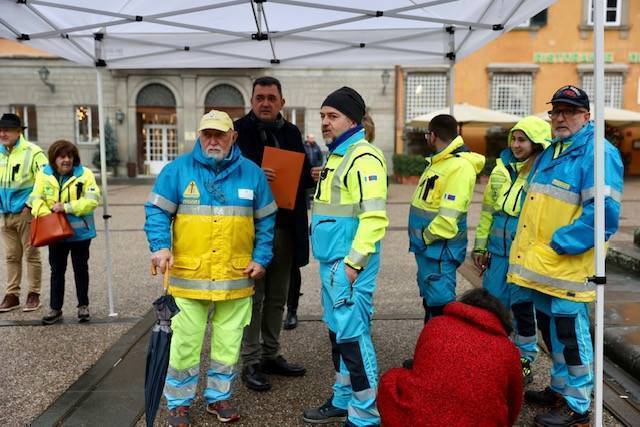 Il taglio del nastro si è tenuto di fronte ad un folto numero di volontari in divisa giallo-ciano, e a molti cittadini.