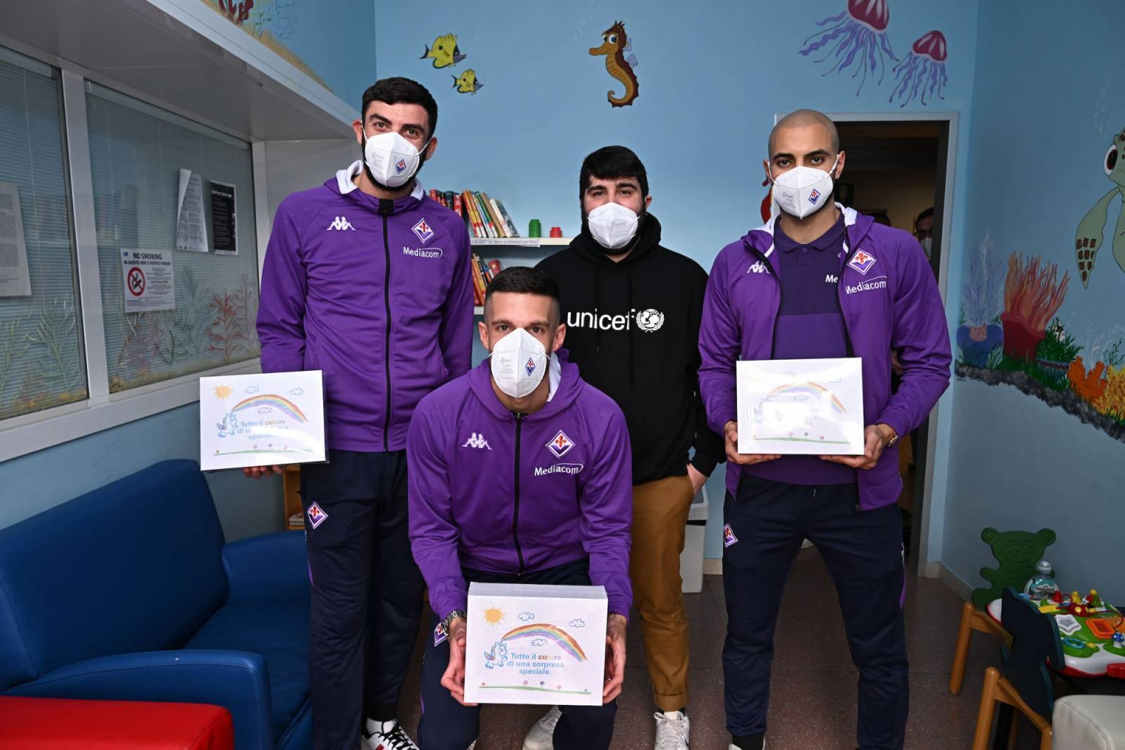 Oggi una delegazione dell'ACF Fiorentina, insieme ai rappresentanti dell'UNICEF e dell'azienda Clementoni, ha consegnato i Regali sospesi UNICEF targati Clementoni ai bambini ospiti presso l'ospedale Santa Maria Annunziata di Bagno a Ripoli (FI). Erano presenti: Cristiano Biraghi, Pietro Terracciano e Sofyan Amrabat, insieme al Direttore Generale del Club viola Joe Barone e al Direttore Tecnico Nicolas Burdisso, con Paolo Rozera, Direttore Generale dell'UNICEF Italia, Pierpaolo Clementoni, Direttore Ricerca Avanzata Clementoni, il dott. Andrea Bassetti, Direttore dell'Ospedale Santa Maria Annunziata, e Gianpaolo Mirri, Direttore di Pediatria e Neonatologia.