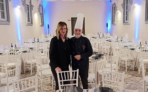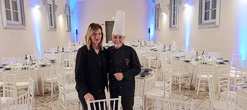 È qui che abbiamo incontrato Luca Buoni che, assieme a Paola Barbuti, sono i titolari dello Stuzzichino Events. “E’ una serata conviviale dedicata a questi giovani dottori commercialisti – ci ha detto Buoni. Siamo in una cornice importante come quella del Real Collegio che ci da la possibilità di lavorare anche con numeri importanti dal momento che stasera saranno presenti quasi 180 professionisti, in un ambiente non solo bello ma anche al coperto che per noi è molto importante”. A poco a poco gli invitati si sono spostati nella splendida “Sala del Capitolo”, impreziosita dalla presenza dei tavoli caratterizzati da una apparecchiatura elegante e curata nei minimi particolari, dove il bianco ha contribuito ad illuminare ancora di più tutto l’ambiente. Ed è stato molto bello, in tal senso, passare dalle luci soffuse del Chiostro all’esplosione di luce nel grande salone adiacente. Il menù della cena ha poi proposto piatti tipici del nostro territorio.