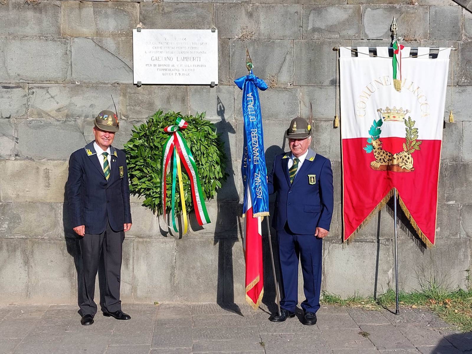 In piazzale Verdi a Lucca il sindaco Mario Pardini in collaborazione con il comandante provinciale della Guardia di Finanza, colonnello Marco Querqui e con la partecipazione di molte autorità, hanno ricordato la figura dell'appuntato Gaetano Lamberti (medaglia di bronzo al Valor Militare) ferito in battaglia presso porta Sant’Anna in Lucca e deceduto a Lucca il 7 settembre 2022.