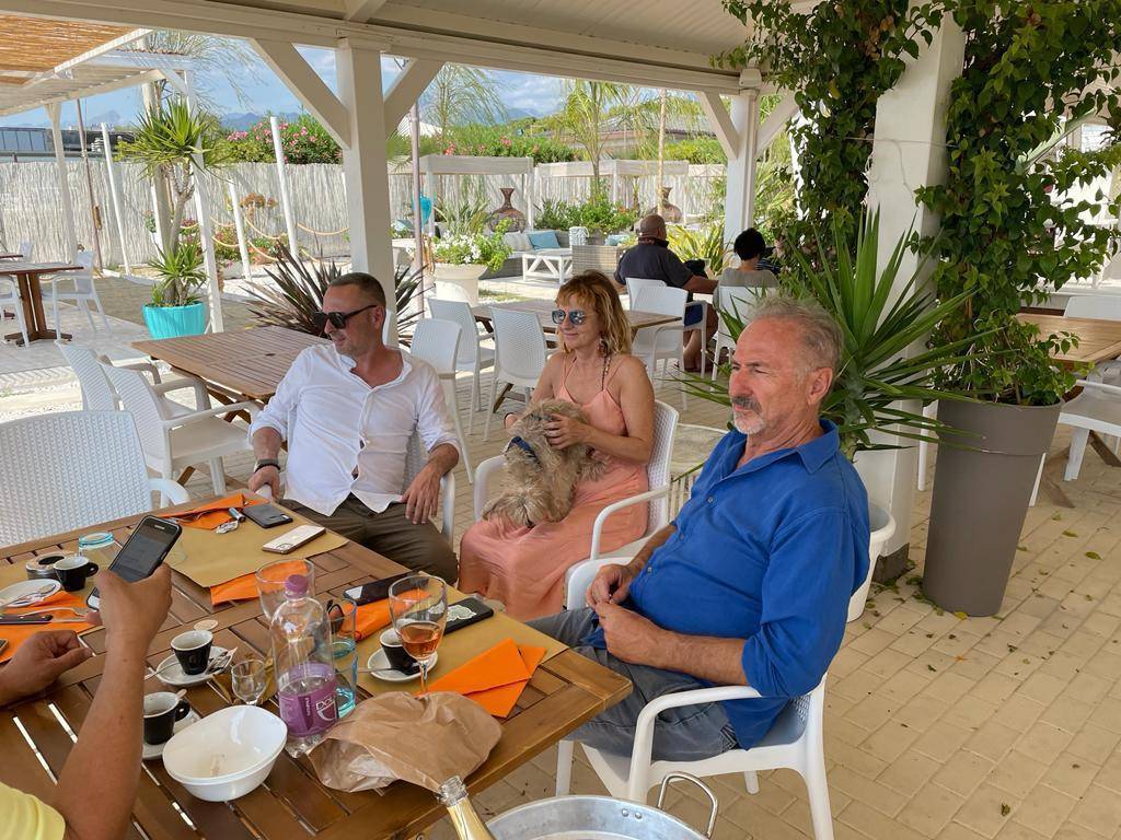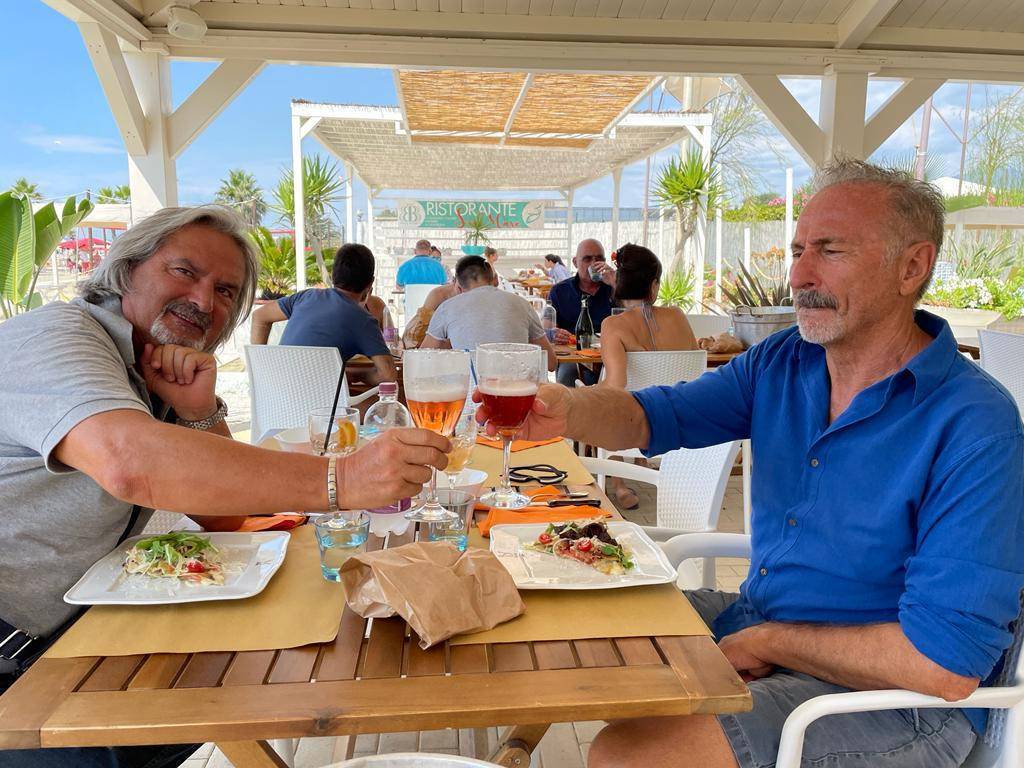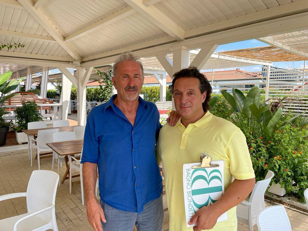 Giacomo Menici si ostina a dare del lei a D'Alessandro nonostante gli abbia ripetuto almeno due volte che deve dargli del tu. Il tempo scorre veloce e piacevole. Fino a quando arriva il momento di alzarsi e salutare. Da oggi le porte del Bagno Biondetti sono sistematicamente aperte anzi, si apriranno automaticamente al solo passaggio di Mimmo D'Alessandro, parola dei Menici. Prima di uscire, impossibile non fermarsi a salutare Dani Kamal, il marito di Monica Menici e papà di Naghy, altro infaticabile artefice del successo di questo stabilimento. Dani Kamal è una persona squisita, di grande cultura, nato a Il Cairo e che ha una passione smodata oltre a una capacità incredibile, di stare, si fa per dire, dietro ai fornelli. E' lui che crea e rende unici i piatti che decollano in cucina e atterrano sui tavoli dei commensali. E non sbaglia mai un colpo.
