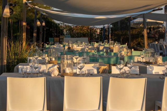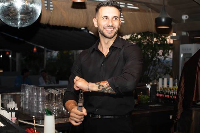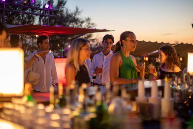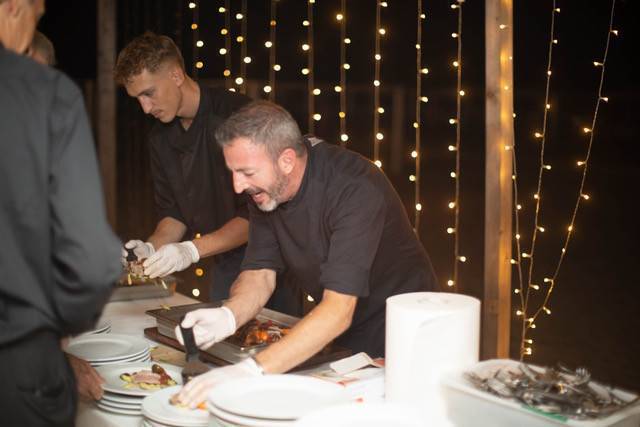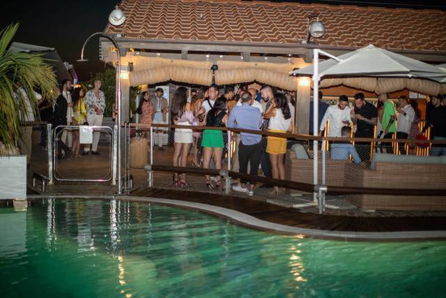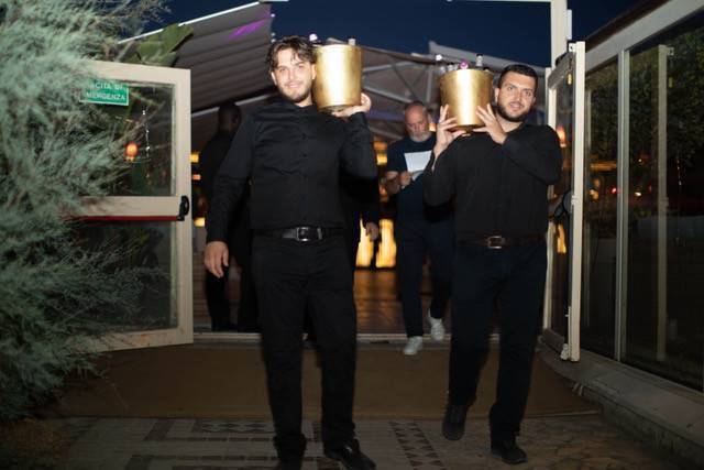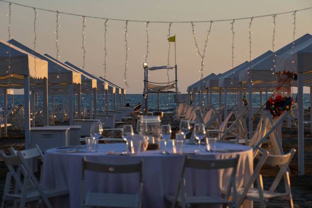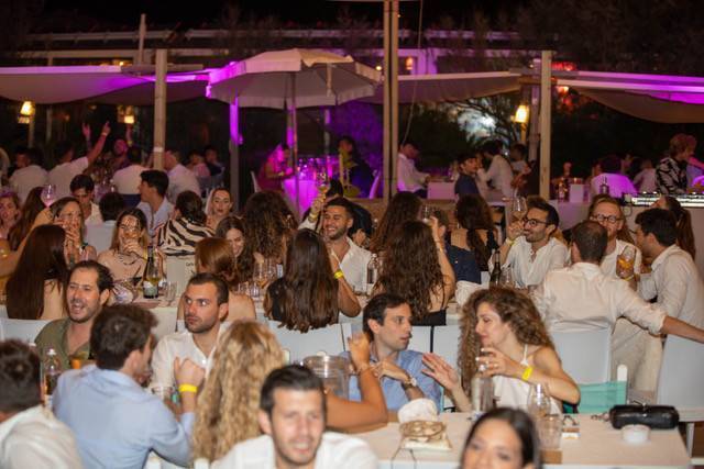 L’eleganza quella bella c’è ancora, con le signore vestite all’ultimo grido sedute a bordo piscina a sorseggiare uno dei favolosi drink di benvenuto che qui degustati al tramonto hanno un sapore magico. Come magici sono gli stuzzichini di accompagnamento creati dallo chef Mirko Citti a base di pesce fresco come moscardini in guazzetto, tonno teriyaki, gamberi impanati con salsina agrodolce o delizie della tradizione toscana come la pappa al pomodoro. Ma la cena sulla spiaggia con i piedi immersi nella sabbia ancora calda è la protagonista indiscussa: risotto di mare, tagliata di tonno con olive taggiasche e pomodorini pachino su letto di zucchine e grande finale con bombolincini versiliesi. Il tutto accompagnato con ottimi vini alla carta e la musica di oggi e di ieri, cantata a squarcia gola dagli ospiti a cena con standing ovation quando parte “acqua e sale” di Mina e Celentano, “una terra promessa” di Eros Ramazzotti e la mitica Carrà. Personale numeroso,attento,gentile e preparato accoglie i festanti con discrezione ma puntualissimo a seguire il cliente durante tutta la serata. E poi tutti a ballare sulle note del dj fino alle prime ore del mattino! Let’s party !!! Let’s friday!
