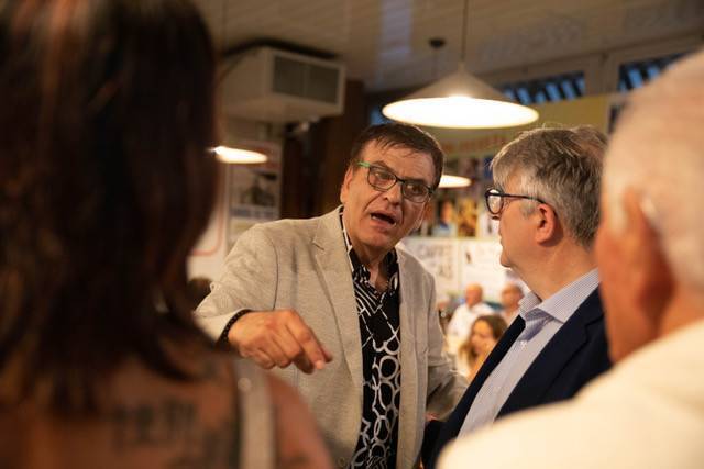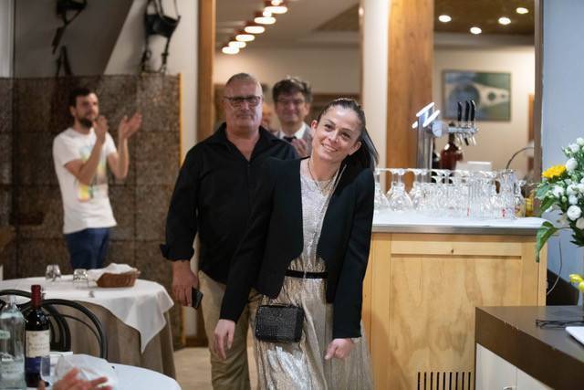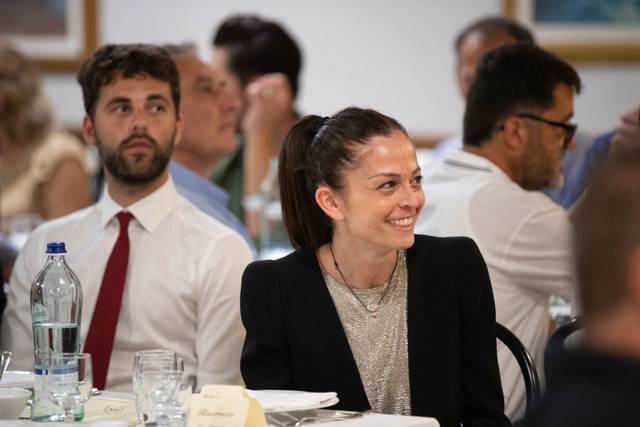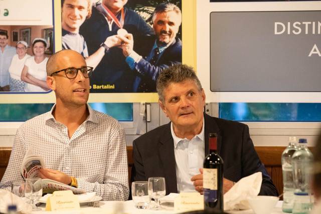 Tutti, ormai, conoscono Valter Nieri e sanno che la sua passione spazia tra la bici e la pallavolo. Ed ecco, quindi, al tavolo, una giovanissima Maila Venturi, lucchese doc e sorella del nostro collega cresciuto alla Gazzetta di Lucca, Nico Venturi, da quattro anni giocatrice in serie A e uno tra i migliori liberi in circolazione. Ricordiamo ancora quando Nico, anni fa, ci parlava di questa sorella che andava su e giù per la penisola vivendo, ormai, da sola e lontana dalla famiglia, pur di raggiungere il sogno di sbarcare in serie A e così è stato. Brava Maila e bravo Valter che l'ha invitata e che l'ha seguita costantemente dalle colonne della Gazzetta della quale è divenuto una delle colonne portanti.