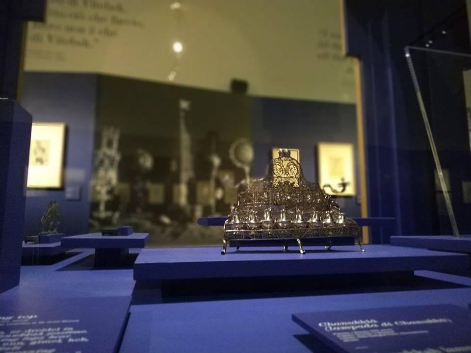 La mostra si apre proprio con una sala dedicata agli oggetti sacri della religione ebraica: dalle pergamene ai candelabri in oro, fino ai libri antichi rilegati con un manto decorativo. Chagall, nelle sue illustrazioni per un libro della consorte, ha provato a ritrarre, in forma stilizzata, i rituali tipici del calendario ebraico: il Mudec ha voluto ricreare questo collegamento, tra quadri e oggetti rappresentati, in un suggestivo incontro tra arte e religione. "Io sono un piccolo ebreo di Vitebsk - soleva dire Chagall -. Tutto ciò che dipingo, tutto ciò che faccio, tutto ciò che sono, altro non è che il piccolo ebreo di Vitebsk". E ancora: "Se non fossi un ebreo, non sarei un artista, o quanto meno non sarei l'artista che sono ora". Un legame con le sue radici, quindi, esplicito, rivendicato e mai reciso.