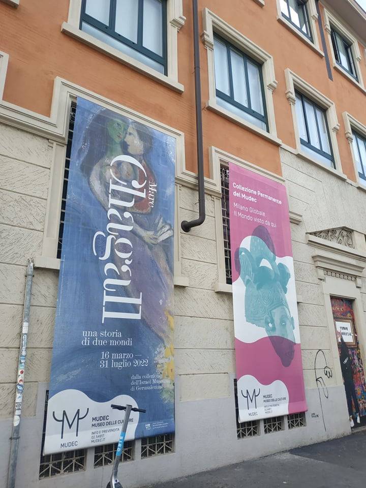 "Marc Chagall. Una storia di due mondi" è il titolo dell'esposizione che il Mudec di Milano ha voluto ospitare dal 16 marzo al 31 luglio. Una visione inedita della sua opera, incentrata sul rapporto con la sua cultura di origine (quella ebraica) e sull'influenza artistica della moglie (attrice, giornalista e scrittrice), resa possibile grazie alla straordinaria collezione dell’Israel Museum di Gerusalemme che, per l'occasione, ha prestato una selezione di oltre 100 capolavori del maestro donati - per la maggior parte - dalla famiglia e dagli amici di quest'ultimo.