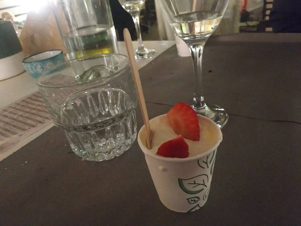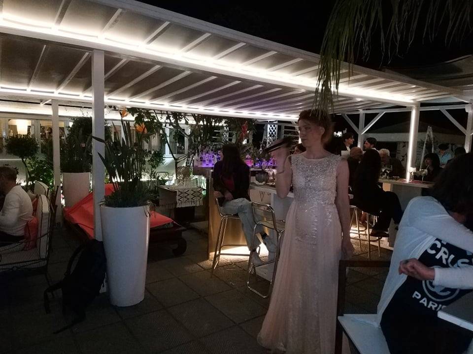 La sfilata ha accompagnato i commensali per tutta la cena. Allietati dalle note dell'inconfondibile Stefano Rindi Resident, particolarmente in serata, gli ospiti dell'atelier hanno potuto gustare le prelibatezze di casa. Il menù? Da sballo: prima un'insalatina di farro al pesce, poi un piatto squisito di crespelle di mare, quindi una degustazione delle imperdibili focaccine gourmet di Giacomo Menici. Dalla 'Voglia matta' con tartufo alla "Inside" con cotto, un viaggio tra i sapori nel quale perdersi. E, per finire, uno sfizioso dessert in coppetta a base di tiramisù ornato di fragole. Da urlo. Il tutto accompagnato da un fresco e leggero Pinot grigio delle Venezie.