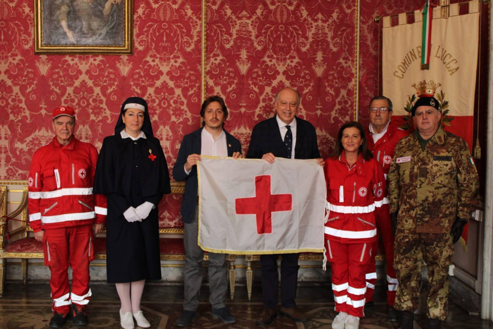 I volontari della Croce Rossa hanno consegnato al Comune di Lucca e alla Provincia la bandiera con l'emblema dell'associazione che, come da tradizione, l'8 maggio celebrerà in ogni angolo del mondo la sua Giornata. Oggi (3 maggio) invece, i volontari hanno consegnato la bandiera al Prefetto di Lucca, Francesco Esposito.