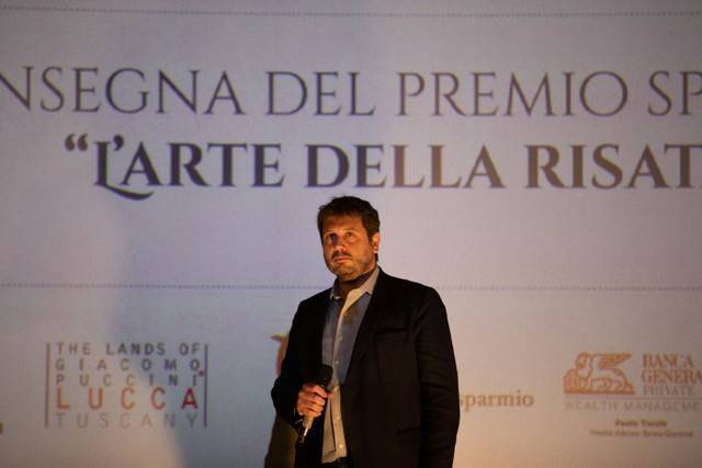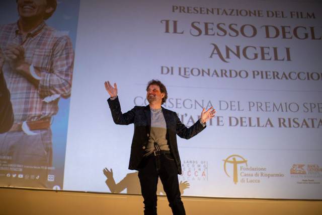 E più tardi, sul palco dove ha ricevuto il premio 'Arte della risata' attribuitogli dal Lucca Film Festival del presidente Nicola Borrelli, ha esordito dicendo che Lucca è sempre più bella ottenendo, in tirono, un uragano di consensi.