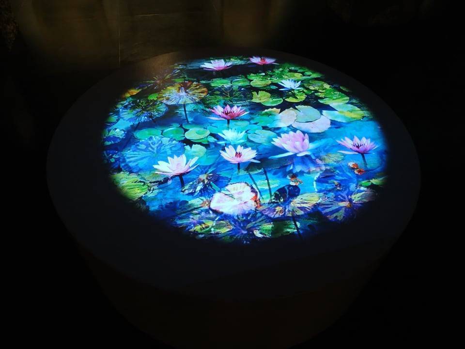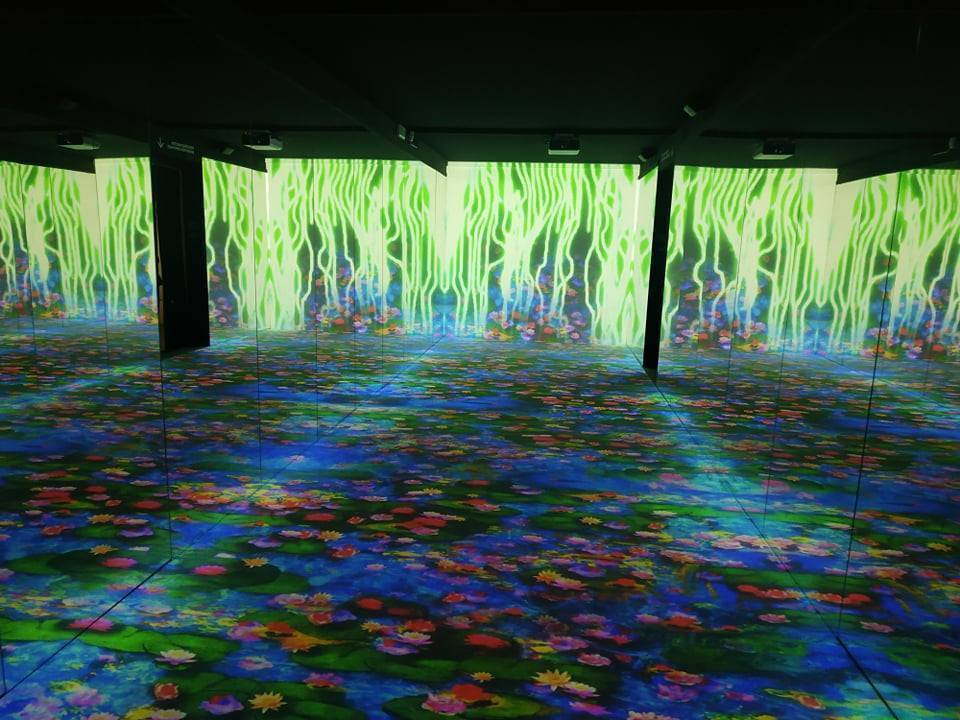 Sotto la direzione di Marianne Mathieu, storica dell'arte e direttrice scientifica del museo Marmottan Monet, si è dato vita ad una mostra in cui il fattore esperienziale di immersione, prende il visitatore sin dall'ingresso: superato il varco, si è letteralmente circondati di luce e colori, di suoni, di immagini che richiamano ruscelli, il suono della natura, fruscio di foglie, la freschezza delle ninfee, quelle che Monet ritrasse in ben duecentocinquanta opere, nella casa di Giverny; qui il visitatore stacca con il mondo esterno, inizia un viaggio, fatto di emozioni, sensazioni, puro godimento per gli occhi e lo spirito.