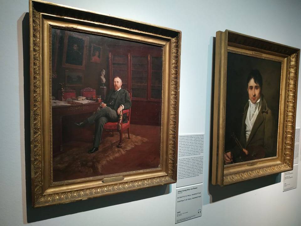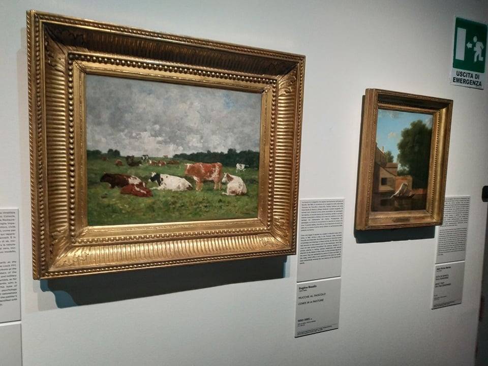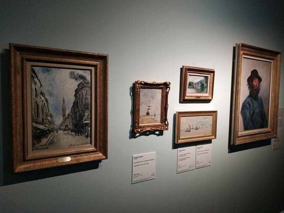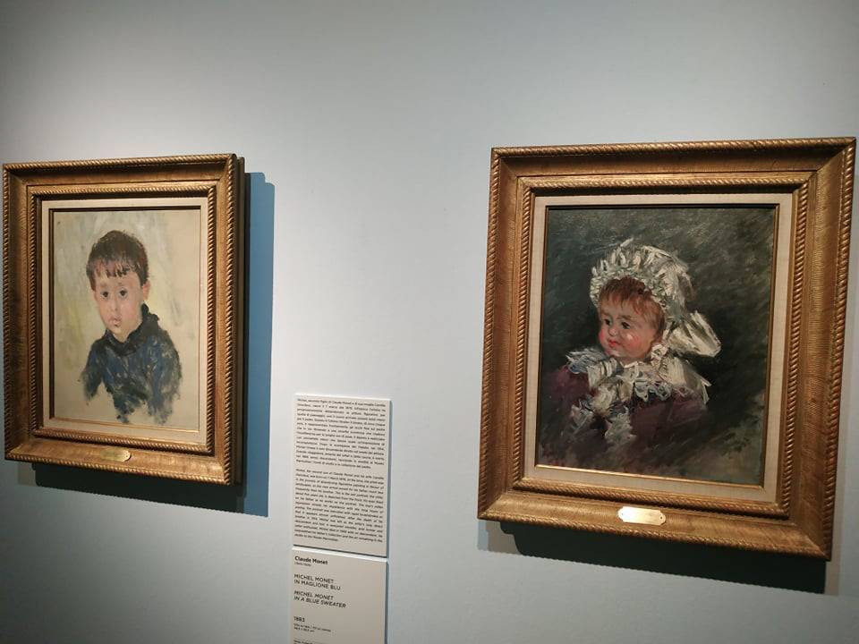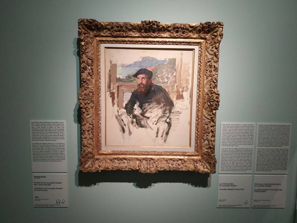 La prima parte della mostra è biografica, incentrata sugli esordi dell'artista, gli incontri che incoraggiarono il suo esordio come pittore dirompente e rivoluzionario: fra il suo ritratto, quello eseguito da Charles Giron, pittore svizzero, suo grande ammiratore, e quelli del figlio minore Michel, spicca la palette di colori autografa di Monet. Il colore negli anni di Monet, subisce a sua volta una rivoluzione tecnica:è il momento del tubetto, trasportabile, molto più comodo da miscelare e per questo, gli artisti escono dai loro studi, alla ricerca della luce, "En plein air", appunto.