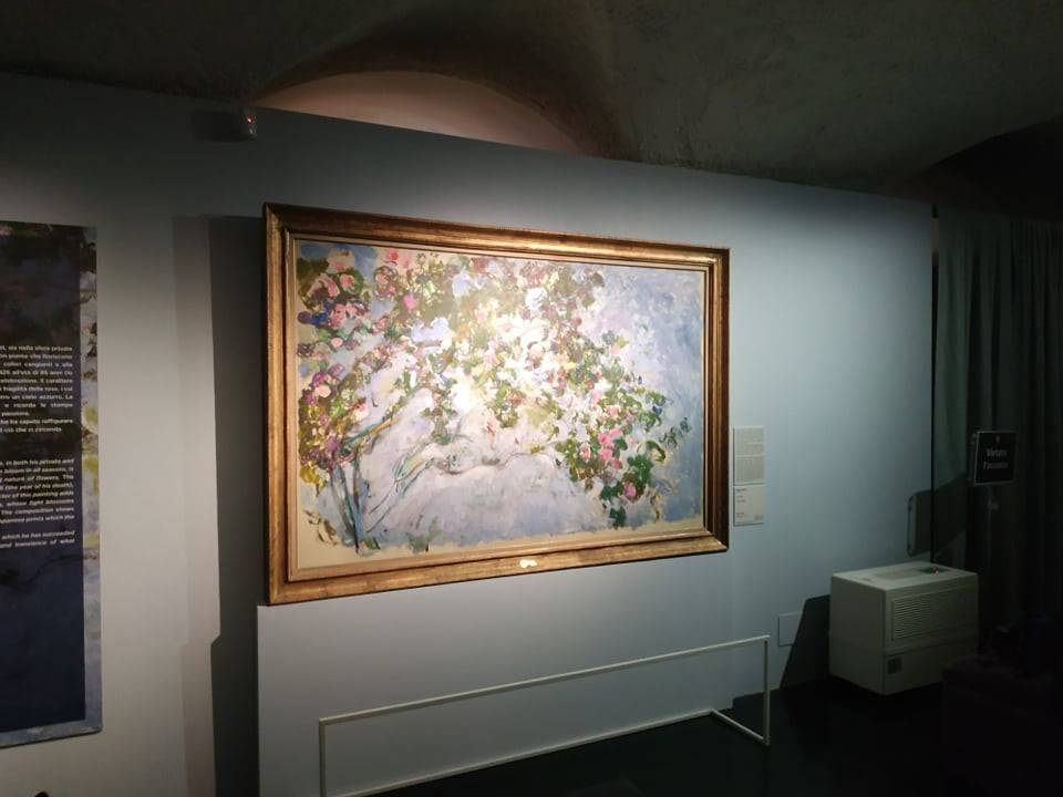 L'ultima sala, nel cuore delle Stanze delle Munizioni, fra le colonne medievali, l'esplosione dei colori dei quadri a soggetto floreale, dalle famose Ninfee al ramo di rose, dipinte fra il 1925 e il 1926, poco tempo prima di morire: i boccioli di rosa colori porpora che si stagliano su un cielo azzurro, il cielo della sua Giverny.