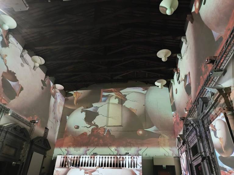 Quindi la seconda sala: un'intera cattedrale al buio, illuminata dai proiettori che, a 360° gradi, emanano, in un vortice dinamico e continuo, le opere di Dalì scomponendole, rivisitandole e confrontandole con quelle dei grandi artisti a cui, lo stesso pittore spagnolo, si è rifatto nel corso della sua produzione. Uno spettacolo unico per gli occhi. Un'esperienza che, da sola, vale il prezzo del biglietto.