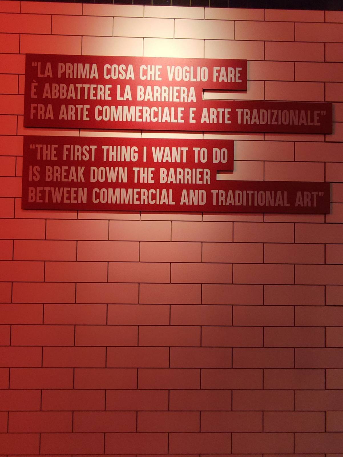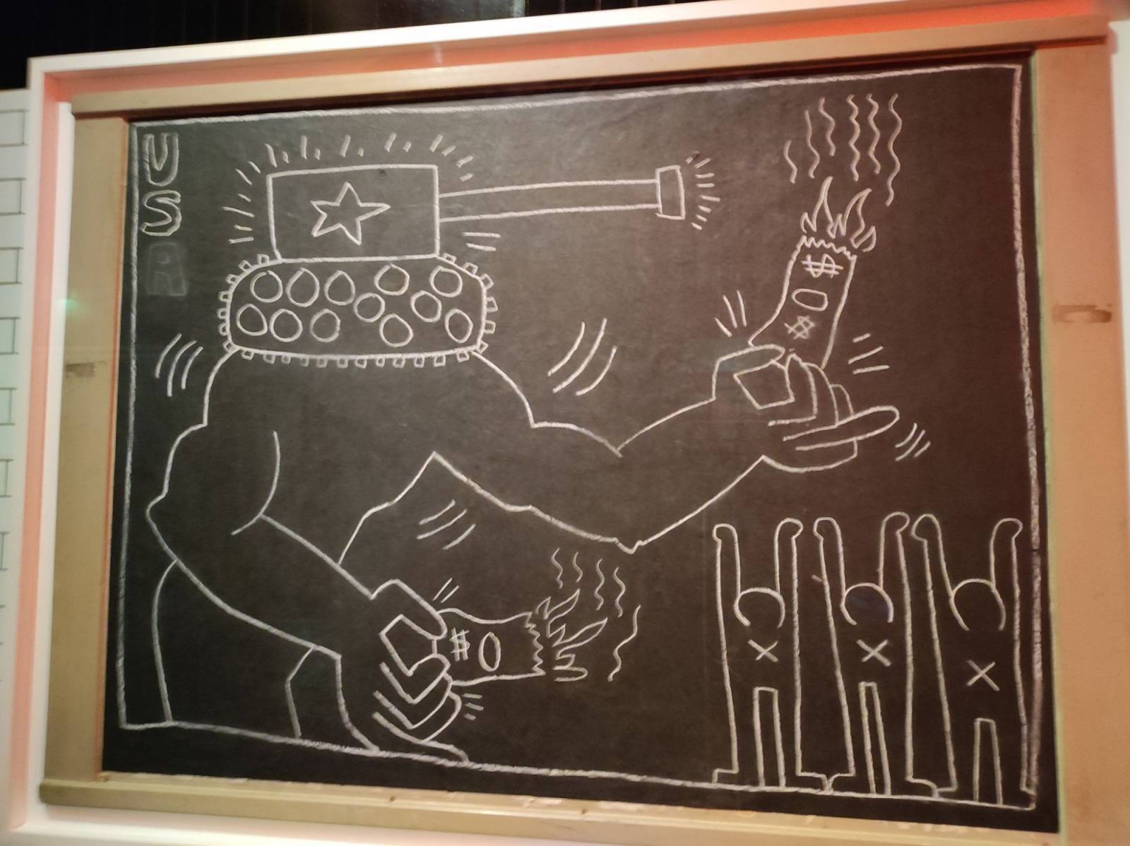 Il percorso è costellato di frasi ed aforismi che riflettono la visione dell'artista sul mondo. Egli disegna ovunque: su tele, panni, fogli di carta. Tutto quel che trova in strada. Il suo stile è originale, il suo messaggio è profondo, i suoi ritratti quasi tribali. Dalla politica al sociale, dalla musica ai fumetti. Ce n'è davvero per tutti i gusti. Quadri, sculture, cover. Haring non si è fatto mancare nulla.